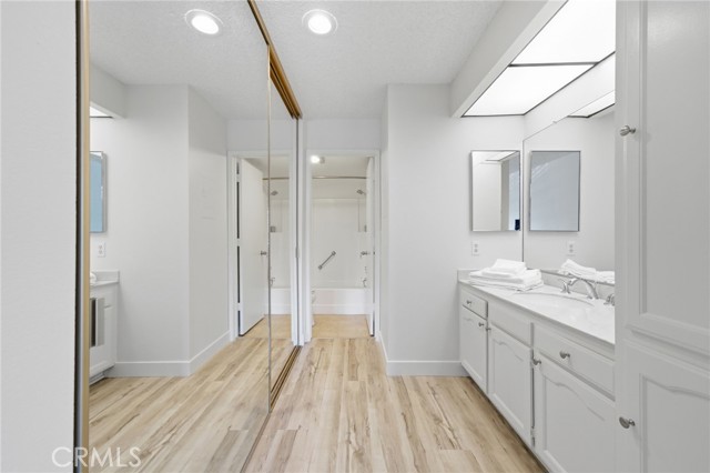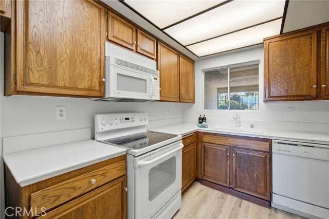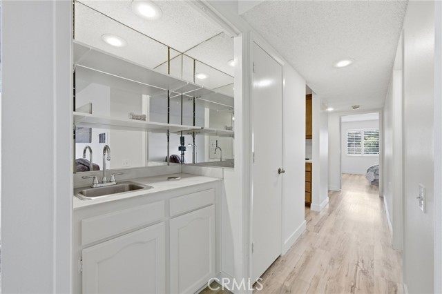 Panoramic mountain and city-light views highlight this top-floor Villa Nueva residence in Laguna Woods Village. Approximately 878 square feet, this one-bedroom home features a full bathroom plus a guest half bath and a private gated entry for added privacy. Recent updates include newer luxury vinyl plank flooring and new interior paint. Abundant natural light and the elevated outlook complete the living space. Located just steps from Clubhouse 6 and its pool. Enjoy resort-style living in this guard-gated 55+ community offering golf, tennis, pickleball, multiple pools and clubhouses, fitness centers, an equestrian center, library, bocce ball, and a wide variety of clubs and hobby studios. HOA dues include water, trash, landscaping, building and exterior maintenance, security, and community bus service to nearby shopping and medical facilities. Convenient access to major freeways and a short drive to Laguna Beach.
