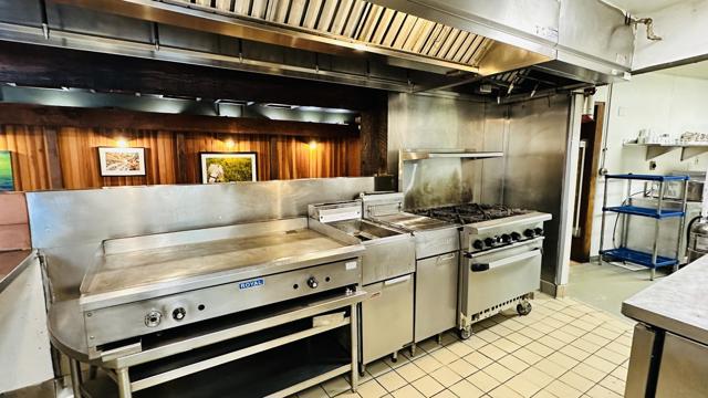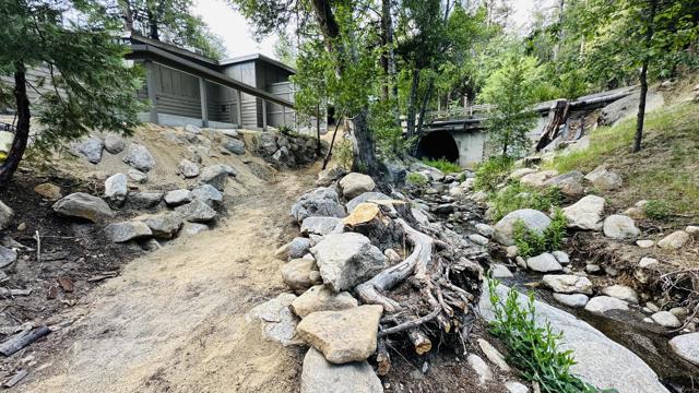 Discover an exceptional opportunity to own a landmark restaurant property on a prime 0.53-acre corner lot with coveted creek frontage in Idyllwild. Formerly home to the renowned Chart House and designed by acclaimed architect Ken Kellogg, this unique venue offers over 3,000 square feet of inviting interior space, highlighted by a dramatic giant rock fireplace that serves as a stunning centerpiece. The chef-ready kitchen is fully equipped with multiple cooking ranges, two commercial hoods, a walk-in refrigerator, and an array of pots, pans, and dishes-everything you need to bring your culinary vision to life. Guests will enjoy ample indoor seating and a full bar setup, while the oversized wood deck and concrete patio provide picturesque views of the tranquil creek, perfect for al fresco dining or private events. An additional entertainment area on the lower deck creates endless possibilities for gatherings and live performances. With its flexible layout, ample parking, and high-visibility corner location, this property is ready to become Idyllwild's next destination dining experience, lively bar and grill, or multi-use event space. Bring your restaurant dreams to reality.