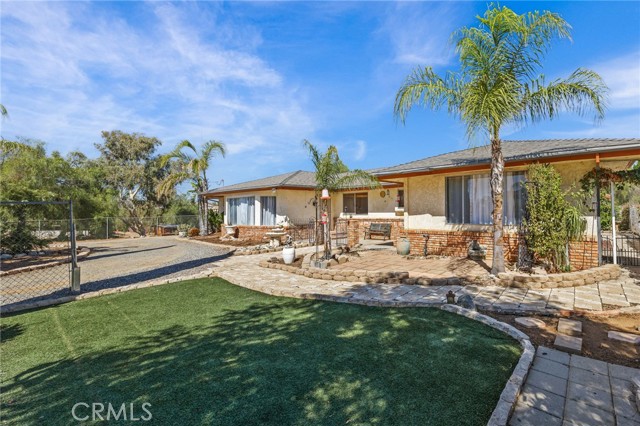 For Sale – Versatile 5-Bedroom Home on 1 Acre in Perris * Bedrooms: 5 * Bathrooms: 3 * Lot Size: 43,560 sq ft (1 acre) Discover this beautifully maintained single-story home offering space, flexibility, and income potential—all set on a full acre of usable land in a quiet, accessible neighborhood. This stunning home boasts a charming brick and stucco exterior with fantastic curb appeal. The front yard is beautifully landscaped with palm trees, stone planters, artificial turf, and a paved walkway. Inside, the open-concept living area features wood laminate flooring and a cozy brick fireplace. The gourmet kitchen shines with granite countertops, rich wood cabinetry, and stainless steel appliances. With two spacious primary suites, it’s perfect for multi-generational living. The converted garage ADU offers 2 bedrooms, 1 bathroom, and a full kitchen, ideal for rental income or extended family. An additional JADU, complete with its own kitchen and bathroom, adds even more flexibility. The gravel driveway provides ample parking for vehicles, trailers, or recreational equipment. Plus, the property is zoned for horses—perfect for fulfilling your equestrian dreams! This property is being sold AS IS and offers incredible potential for customization, expansion, or income generation. Buyer to verify all permits and city requirements. Whether you're an investor, homeowner, or multi-generational buyer, this property checks all the boxes for space, versatility, and long-term value.