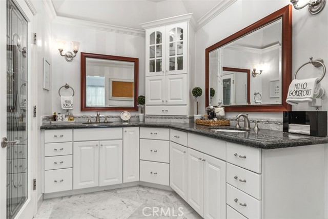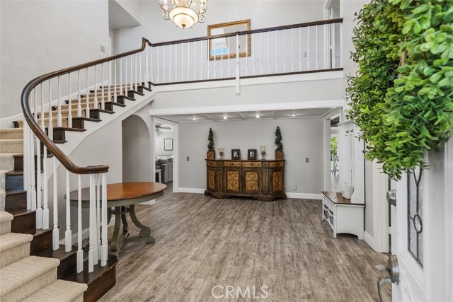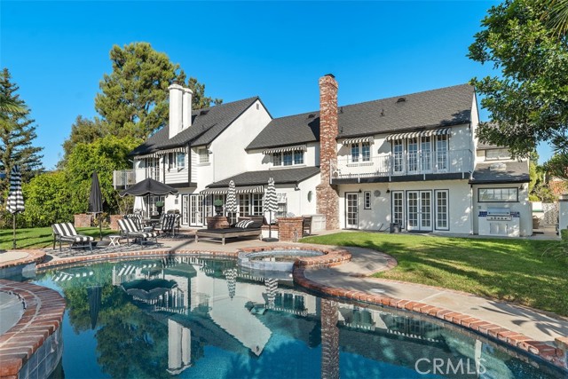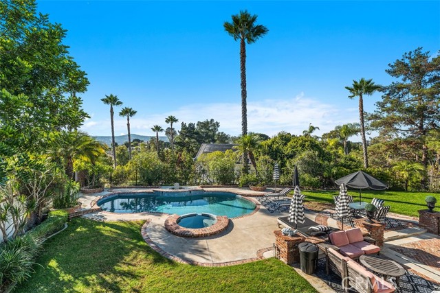 Nestled on a serene cul-de-sac, this stunning Nellie Gail Ranch custom home redefines multigenerational living with a main-level junior primary suite and an upstairs primary suite, plus a step-free lower level. Spanning almost 5,000 sq ft, this traditional residence offers 5 bedrooms, 3.5 baths, a bonus room, a craft room, an enormous laundry room, an office and a 3-car garage. A grand foyer welcomes you with beautiful flooring that flows seamlessly throughout, while brick wall accents add character and warmth. Enjoy two inviting living areas with fireplaces, a spacious dining room, and a kitchen that opens into the large family room. Upstairs, retreat to the primary suite featuring a private den, two large walk in closets and a primary bathroom with marble floors, a soaking tub, and dual vanities. The serene backyard is designed for relaxation and entertaining featuring a pool and spa, built-in BBQ, breathtaking views and a corner lot allowing for additional privacy. This remarkable home captures the essence of the Nellie Gail Ranch lifestyle—truly a must-see to appreciate its full charm and functionality.