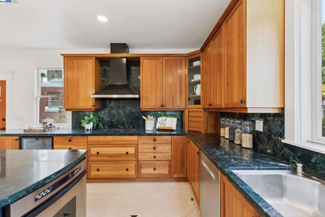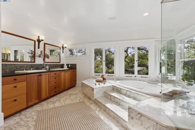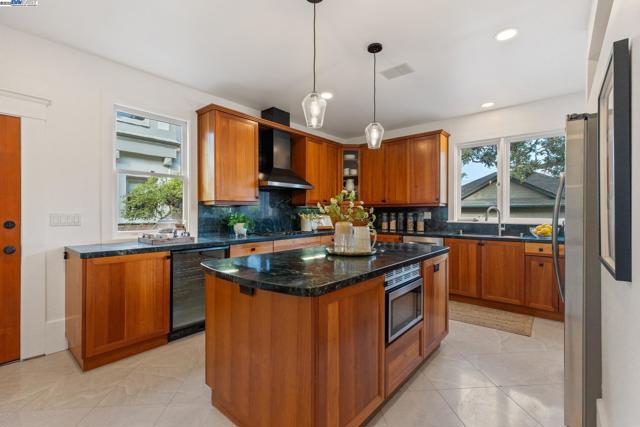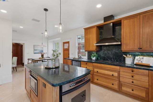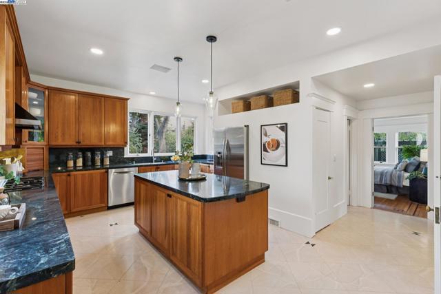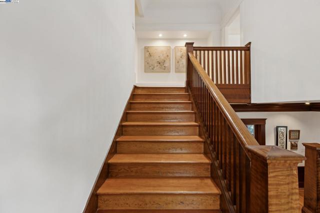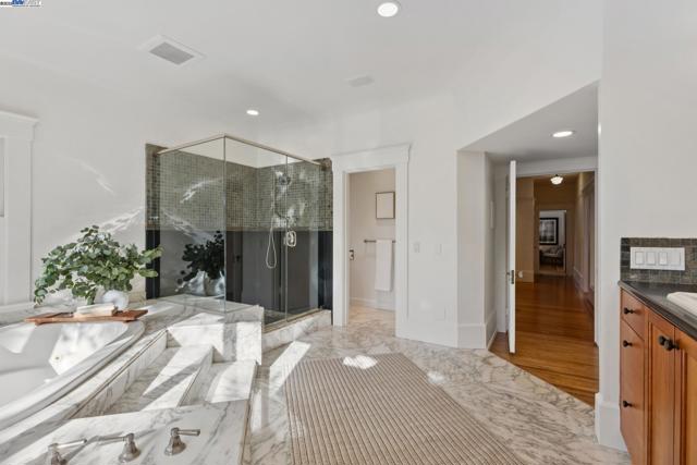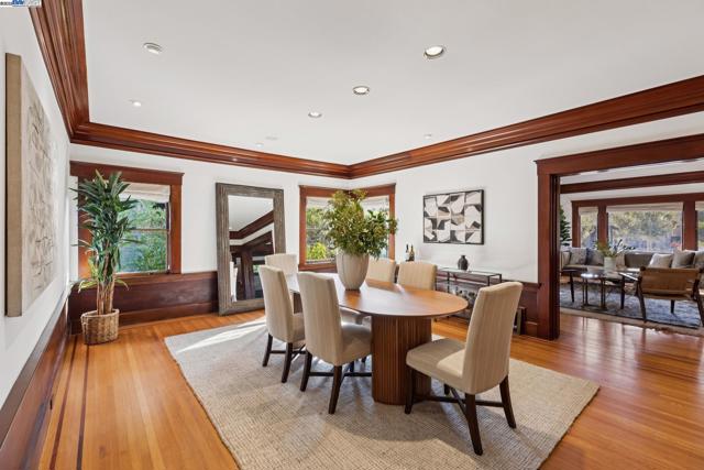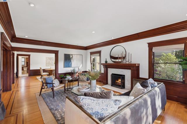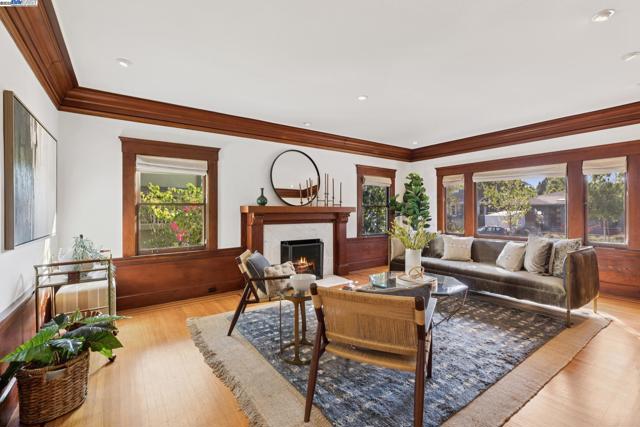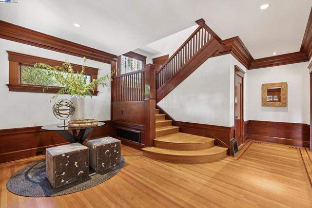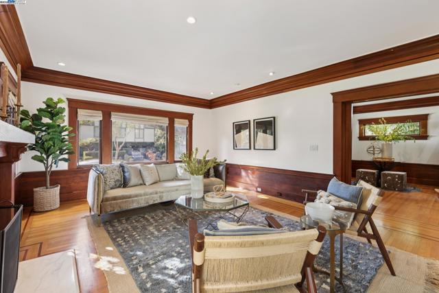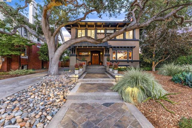Spectacular Craftsman Estate in the heart of Alameda’s Gold Coast. Built in 1911, this 4 bed 3.5 bath 4,499sqft home is situated on a meticulously landscaped 11,250 sqft lot. Located on Bay St. where gorgeous vintage homes abound, this lovingly maintained home features well preserved historic details & stunning updates. The large foyer flows into the expansive living room and formal dining room where well preserved wood details span from floor to ceiling. The updated kitchen features green marble counters and limestone floors. Adjacent to the kitchen, is the stylish powder bath with limestone vanity. A light-filled bedroom on the main floor overlooks the lush backyard. Upstairs the Primary retreat includes a spa-like bath and walk-in closet. The massive family suite has ample space for art studio/sitting area-large enough to be divided into 2 bedrms! A full bath, laundry and another sunny bedroom w/ensuite bath completes the 2nd floor. The lower level is versatile with office workstation/family rm/workshop/storage & impressive wine cellar that fits up to 1000 bottles! Under the canopy of giant Oak Trees, the backyard has been beautifully designed to accomodate mulitple areas for gathering and play. Located in a neighborhood known for its Halloween festivities and July 4th fun!