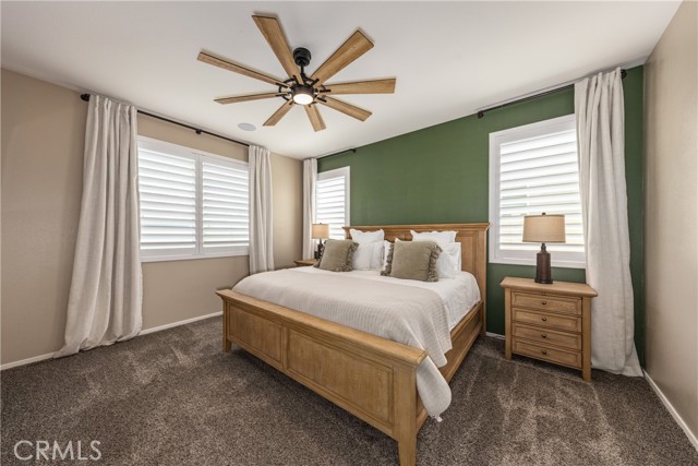 WELCOME TO YOUR DREAM HOME! This Singleton Heights home has the freedom of NO HOA and PAID SOLAR adding to the value and cost savings of your future home. This unique floorplan is open and spacious with an abundance of natural light! As you enter, you are greeted by a space for an office or a den. The spacious kitchen has ample cabinetry and counter space, a large island for entertaining and additionally, a walk-in pantry. The kitchen and dining area is open to the spacious family room. The family room contains a fireplace with built in cabinetry and two sliding doors leading to the rear and side yard bringing in natural light. This floorplan boasts two primary suites, each at opposite ends of the hallway, both with walk in closets. There are two additional bedrooms in the hallway separated by a Jack and Jill bathroom. Also in the hallway is the guest bath and indoor laundry. Outdoor characteristics this home has to offer are the cul-de-sac location, covered front porch, a stamped concrete side porch off the kitchen, the grassy rear yard off the living room, and a 3 car tandem garage with an extra wide driveway for additional parking. Other upgrades include surround sound speakers (in the living room, both primary bedrooms and in the back yard), security cameras, wi-fi thermostat, whole house fan, tankless water heater, dimmer switches, hard wired fire sprinklers, EV Charger in the garage, plantation shutters throughout and 220v on the side of the garage along with upgraded solar. This homes has a thoughtful layout, stylish design, ample upgrades and outdoor space to match your future needs. Schedule a showing today!