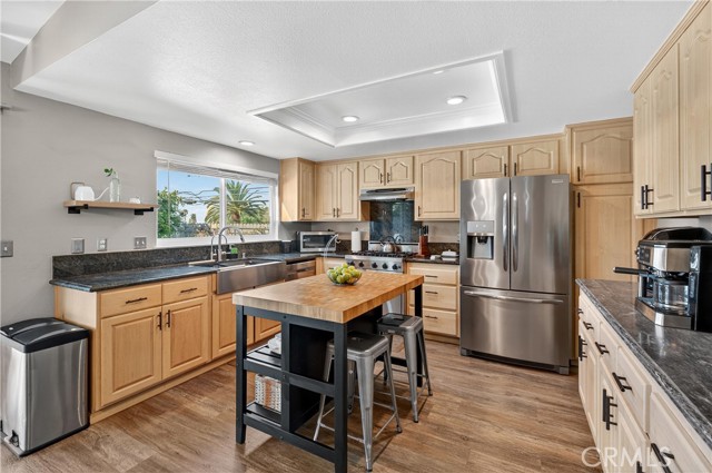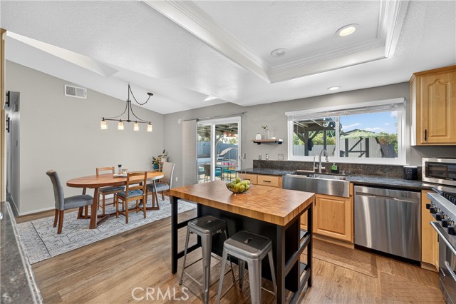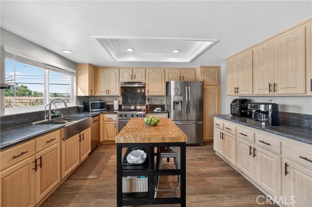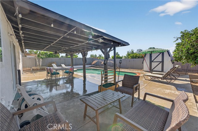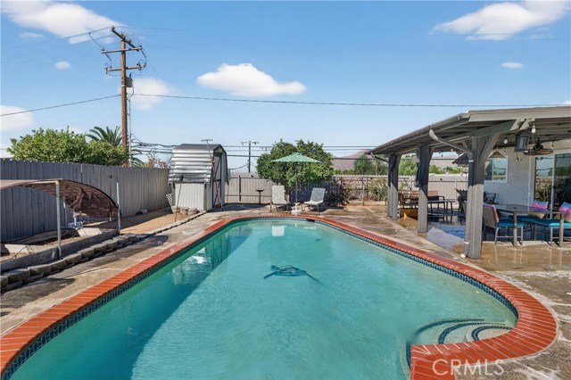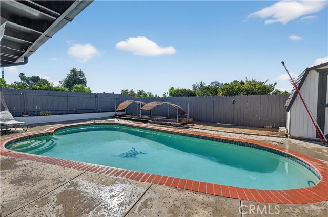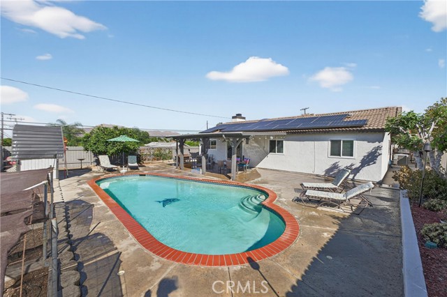 Your move-in ready dream home with a pool and fully paid solar is here! Welcome to 24761 Metric Drive in Moreno Valley, offering everything you need for comfort, style, and efficiency. This corner lot is fully fenced with cinder block and wrought iron plus a remote-controlled gate for privacy and security. Inside, the spacious layout highlights a remodeled kitchen with granite countertops, pull-out soft-close drawers, and a premium Viking range. The home also includes a whole-home water softener system, washer and dryer, and a newer HVAC system. Step outside to your private backyard oasis with a sparkling pool, covered patio, and landscaped yard perfect for entertaining. A terraced garden area provides extra space for planting or creating your own outdoor retreat. With four full bedrooms, two bathrooms, and energy-saving features, this home delivers unbeatable value in a quiet neighborhood. Move-in ready and priced to sell quickly—don’t miss the opportunity to make this your forever home.