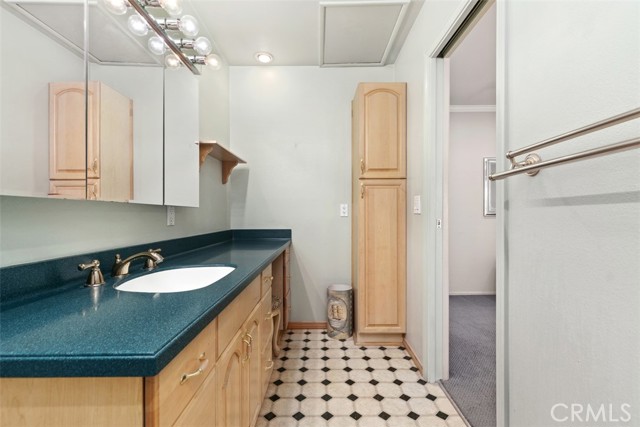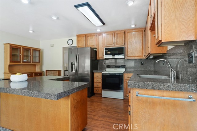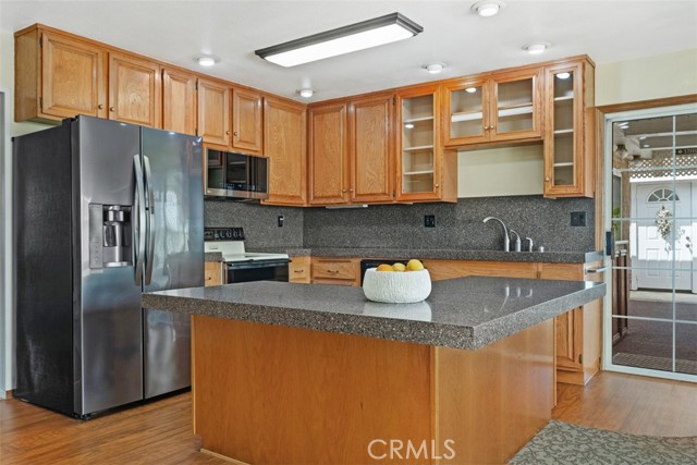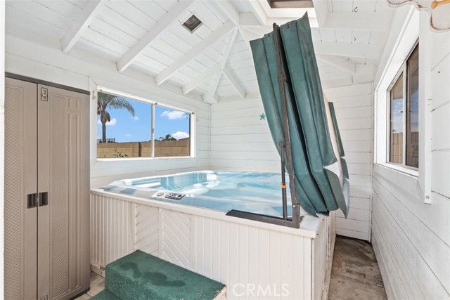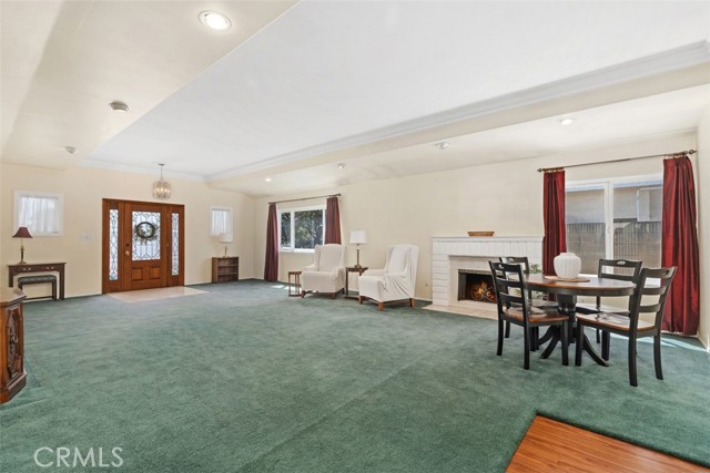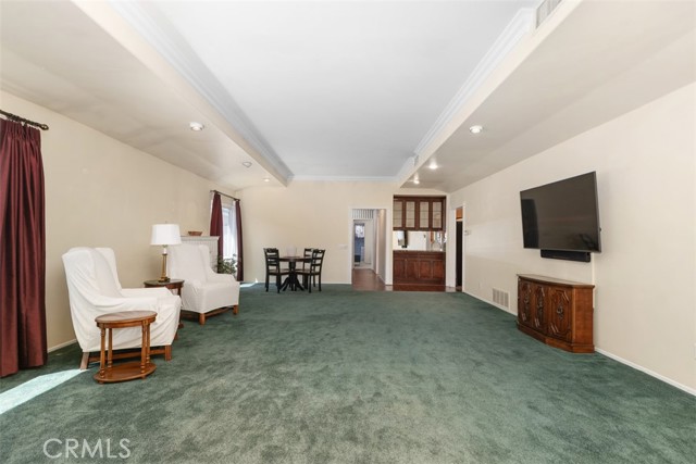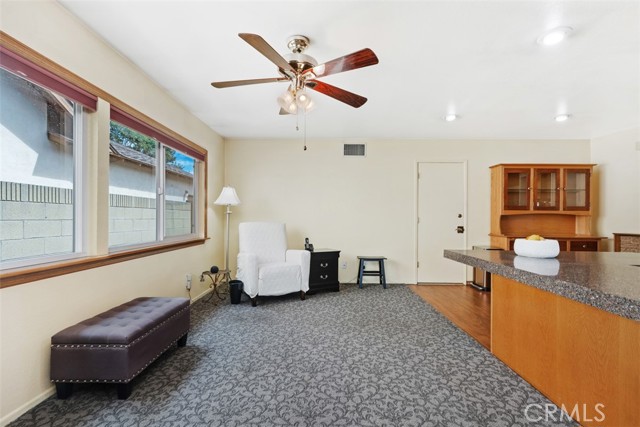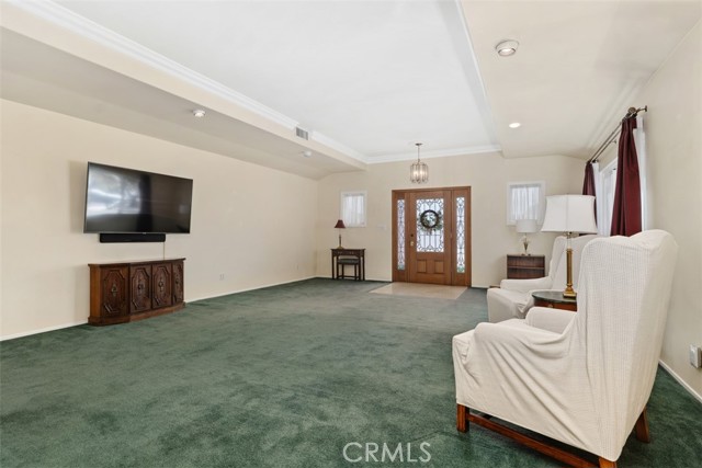 Beautifully maintained home with approx. 1,765 sq. ft. living space, backing to the Navy Golf Course. Step inside to a spacious living room with can lighting, coffered ceiling, fireplace, custom cabinetry, and a built-in bar. The remodeled kitchen features stone countertops, a custom island, and large windows overlooking the yard, flowing into the family area for easy entertaining. The expanded master suite includes a large walk-in closet, updated bathroom, and patio door to the private yard. Additional highlights include dual-pane windows, copper repipe, forced air heating, central air conditioning, ceiling fans, and soft water system. The finished two-car garage includes custom cabinetry, attic storage, and a laundry area with sink. Outdoor living features a covered patio, artificial turf, low-maintenance landscaping, and spa with custom gazebo. Conveniently located near the 405, 605, and 22 freeways, with nearby shopping (including Costco, Trader Joe's), parks, and award-winning schools: Patton Elementary, Bell Intermediate, and Pacifica High School.