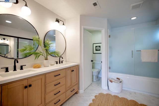 Located in Alameda's desirable Harbor Bay Isle at Brittany Landing Bay HOA, this 2-story townhome is close to top-ranked schools, parks and the SF Bay Trail. Recently updated, this sophisticated contemporary home features 2 ensuite bedrooms, 2.5 bathrooms, an open living room/dining room combination, an eat-in kitchen, laundry room, a private backyard patio, an attached garage and an additional reserved parking space. Details include updated bathrooms, a w/b fireplace, dual-pane windows, new light fixtures, a freshly painted interior and plenty of bright, natural light throughout. The sunny, updated kitchen has black granite counters, bay windows + stainless steel appliances. The primary bedroom features multiple large closets, a vaulted ceiling, a private balcony and a spacious ensuite bathroom. The HOA includes a heated community pool + spa. Just minutes to Earhart Elementary + Lincoln Middle schools, this prime location offers close proximity to a lagoon trail/path, a toddler playground, Veterans' Park + the Harbor Bay Club. Convenient to Harbor Bay Landing Safeway/Starbucks and the many amenities at South Shore Center and downtown Park Street. Nearby commuter options include ACTransit, the SF Ferry and easy freeway access. Wonderful, move-in condition!