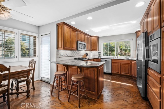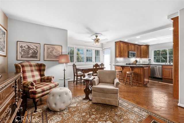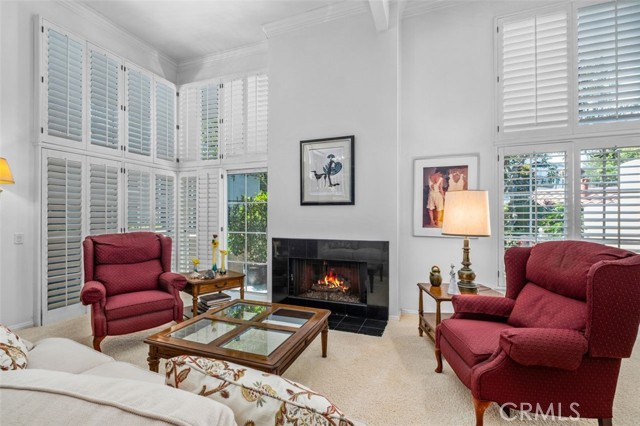 Seize the opportunity to live in one of the most prestigious communities in Huntington Beach. This interior END-UNIT sits in a quiet location and is within the prestigious ocean-close, guard-gated community of SeaCliff on the Greens. This spacious 2,236 SF townhome offers the best of coastal living. Step through the expansive WRAPAROUND PATIO into a bright and inviting living room with soaring vaulted ceilings, a cozy fireplace, and dramatic floor-to-ceiling windows accented with plantation shutters, glass door built in cabinet & wine rack. The open-concept dining area flows effortlessly into a beautifully designed kitchen with granite counters, Bosch and GE appliances and electric blinds at the patio door and kitchen, complete with a breakfast bar, and an adjoining family room ideal for everyday living and entertaining. Upgrades include new AC, a new updated electrical panel, a new roof, newer windows except in the living room and two remodeled bathrooms. The upstairs features a large family room which can be converted to a 3 bedroom. The oversized master has a private balcony, a huge walk-in closet and a remodeled bathroom with dual sinks and separate soaking tub. 2nd bedroom also features a remodeled guest bath. The oversized 2-car garage features a work table with built-in cabinets & drawers. There is also a separate household storage area with built-in shelves behind sliding doors. A real plus is extra parking next door for your out-of-town guests. Seacliff provides access to multiple pool and spa areas and main clubhouse in this exquisitely landscaped community. This home is also located in the award-winning Seacliff Elementary School District and is a quick stroll to the Huntington Club for a round of golf, pickleball or tennis. A short 9-minute walk to the beach, Dog Park or ride your bike downtown!