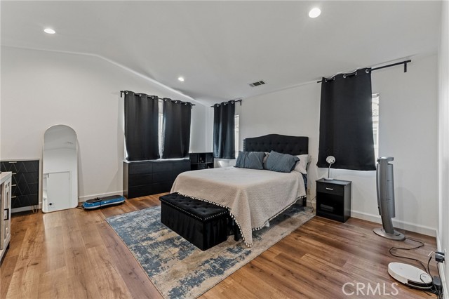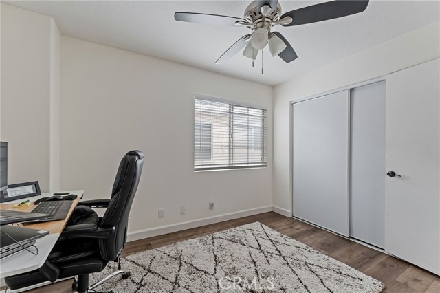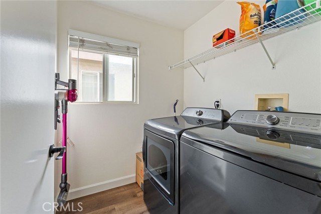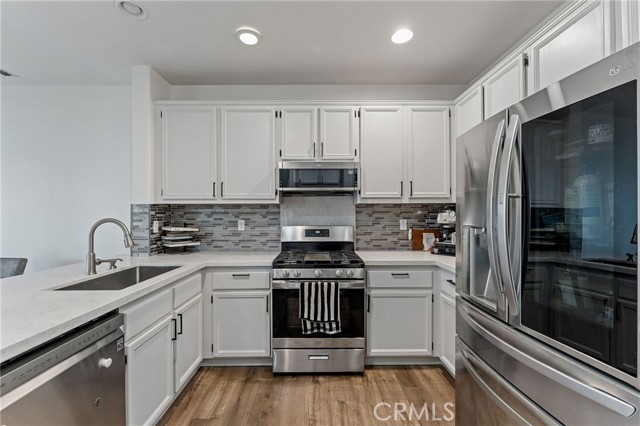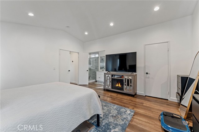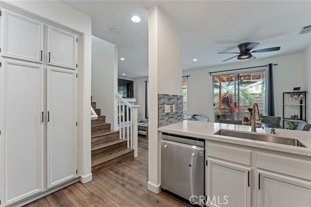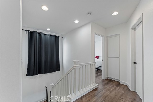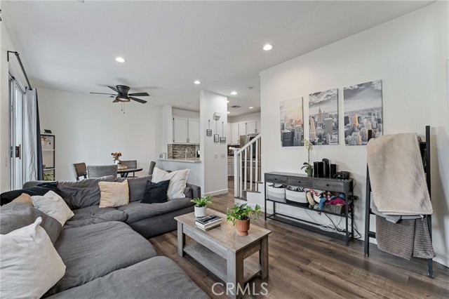 Welcome to Lampson Cottages, a private gated community in Garden Grove, where this beautifully renovated 3-bedroom, 2.5-bathroom home is ready to be yours. Built in 2000, the home blends fresh upgrades with timeless comfort. Step inside to find fresh interior paint, recessed lighting, and laminate flooring throughout. The kitchen and bathrooms showcase quartz countertops, while the kitchen itself is outfitted with newer appliances and a gas range. Upstairs, the bright and airy primary suite features soaring vaulted ceilings, a walk-in closet, French doors, and a stunning remodeled bathroom with a spacious walk-in shower and dual sinks. All bedrooms are equipped with ceiling fans and lights for added comfort and convenience. Additional highlights include central A/C and heating, a cozy gas fireplace in the living room, and a two-car garage with direct access, equipped with a Tesla charger. Unwind in the private backyard retreat, enhanced with charming landscaping. A must-see opportunity in a desirable gated community!