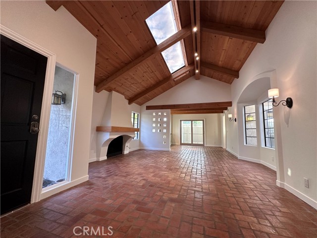 In the heart of Irvine’s famed Woodbridge community, in the boutique neighborhood known as The Grove, and with a backyard gate that opens directly to Ashford Park (with its pool, spas, sport courts, play equipment, and green space) is this SINGLE STORY end-unit home that combines convenience, privacy, and character. Inside, this isn’t a cookie-cutter tract house! Architectural details set it apart — from arched passageways and plank-and-beam ceilings, to a distinctive fireplace with warm wood accents and low-maintenance brick paver flooring playfully sprinkled with colorful tile inlays. Natural light pours in through skylights, while a wraparound yard — designed to feel like an atrium — is visible from the living room, kitchen, and primary suite. The result is a super private outdoor retreat that brings the beauty of the outdoors in, perfect for entertaining or simply relaxing at home. The primary bedroom has an ensuite, freshly remodeled bath featuring dual vanities, quartz counters, and brand-new cabinetry as well as a huge walk-in closet. The secondary bath was updated with the same finishes for a consistent, stylish look. A versatile den space offers an ideal extra area, which could function as a home office, fitness or reading room, or enclose it into a true third bedroom. Fresh paint and new bedroom carpet give the home a bright, welcoming feel right away, while a direct-access 2-car garage and gated front courtyard add everyday convenience and security. As part of Woodbridge, residents enjoy access to two landmark lakes, over 20 pools and spas, tennis, playgrounds, and miles of trails — plus award-winning Irvine schools. With all these great details on a single story, this rare Woodbridge find combines thoughtful updates, timeless character, and one of the most desirable locations in Irvine into a home you can enjoy for the rest of your life!