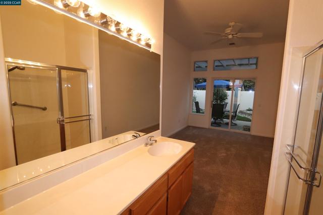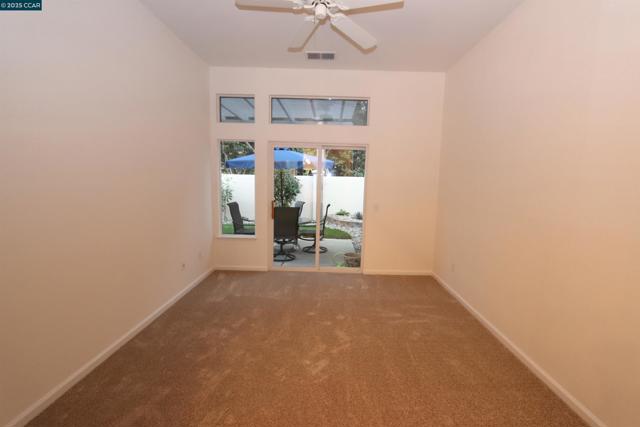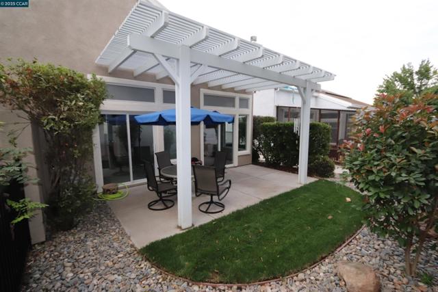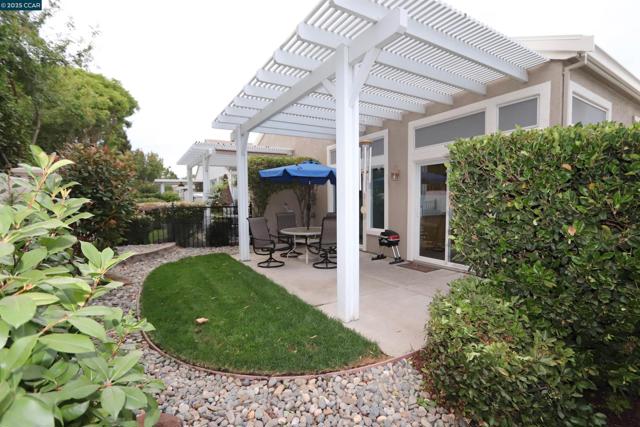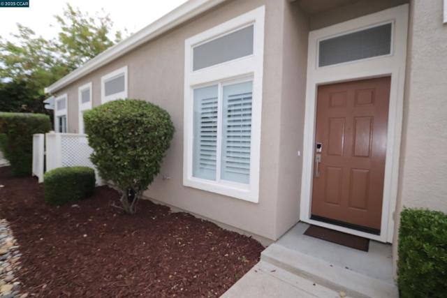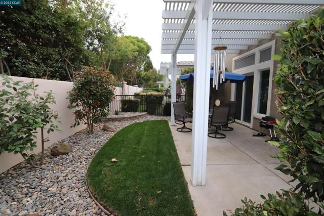 This is a duet – The Bartlet model - Open SUNDAY Sept. 28th from 12-3pm. This home has 2 bedrooms, 2 baths and a 1car garage with extra depth. The home is about 994 sq ft (see floor plan). Kitchen has tile counters, lots of cabinets, gas stove/oven, microwave, dishwasher and refrigerator and custom flooring w/ large dining area. New carpet & paint throughout the interior plus some nice ceiling fans. A large living / family room with plantation shutters. Primary bedroom w/ walk-in closet, primary bath has a stall shower. On the other side of the house is the guest bedroom and guest bathroom with a tub/shower combo. The laundry is a stackable washer & dryer in a closet. These duet lots are not huge with about 2,570 sq ft, however, check out the nice patio & patio cover, new grass and low maintenance landscaping and no rear neighbors. Summerset 1 is a gated 55 + senior community - The HOA is $175 monthly and includes swimming pool, hot tub, gym, tennis, bocce ball, activity clubs to join, dinners & dances, security gates & more. Just minutes away from Kaiser Hospital & John Muir, Safeway & CVS.