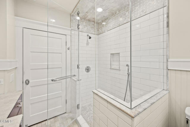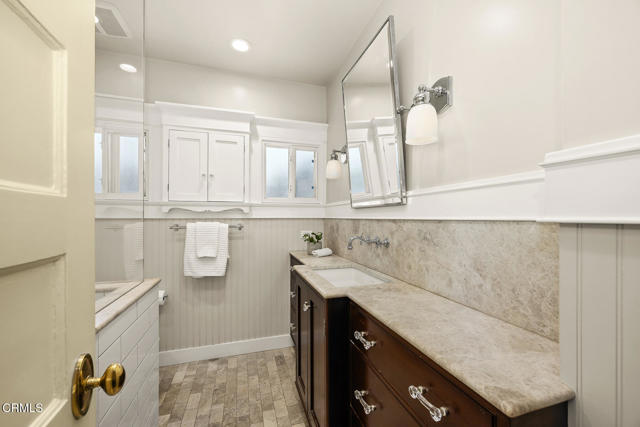 Charming 1914 Craftsman nestled in the heart of South Pasadena. This beautifully maintained home blends timeless charm with thoughtful modern updates. Set behind a welcoming covered front porch, this two-story residence invites you in with a warm and open layout, perfect for both everyday living and entertaining. Step inside to a spacious living and dining room adorned with gleaming hardwood floors, a cozy brick fireplace, wainscoting, and classic picture molding that exude historic character. The central hallway leads to a convenient laundry room and a remodeled kitchen, complete with built-in appliances and stylish finishes. The kitchen opens seamlessly into a generous step-down family room, highlighted by a second brick fireplace and a wall of glass doors that offer views and access to the oasis-like backyard. The first floor is complete with three comfortable bedrooms a remodeled 3/4 bath and laundry room, ideal for guests or a growing family. Upstairs, escape to a tranquil primary suite boasting vaulted ceilings, dual closets, and its own wall of glass doors leading to a picturesque balcony--a perfect spot to enjoy your morning coffee. The luxurious ensuite bath includes dual vanities and elegant finishes throughout. Step outside into the lushly landscaped backyard, designed as a private retreat. At the heart of the garden is a burbling fountain, surrounded by fruit trees and a peaceful seating area ideal for relaxing or entertaining. A detached 2-car garage and additional 1-car carport provide ample parking and storage. Located in the award-winning South Pasadena school district, this exceptional home combines historic charm, modern comfort, and a truly special setting. Don't miss the opportunity to own this rare gem.
