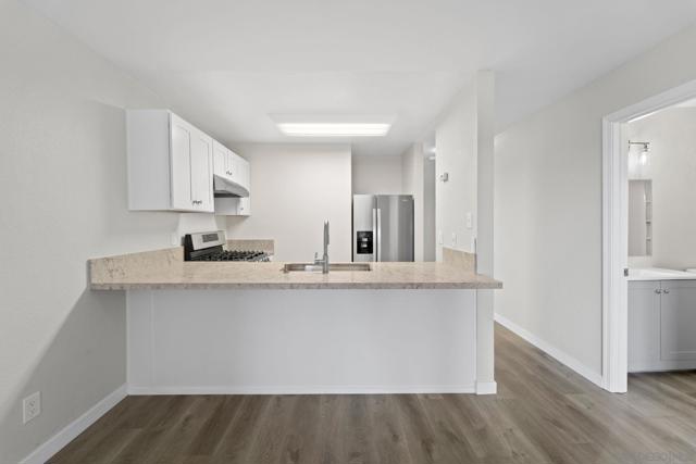 Upgraded 3 Bed, 2 Bath Single-Story Condo in Gated Community! This bright corner unit offers privacy, natural light, and one shared wall. Features include an open layout, quartz countertops, semi-custom cabinets, stainless steel sink, faucet, range hood, garbage disposal, and updated plumbing/electrical. Newer Williams Top-Vent Wall Heater (35,000 BTUH) adds comfort. Ideal for first-time buyers, downsizers, or investors. Turnkey and move-in ready—schedule a tour today! Wonderful single story 3 bedroom, 2 Bathroom Condominium in mint condition. Corner unit with a view, gated community, move in ready, The kitchen has semi-custom cabinetry, quartz countertops, stainless steel kitchen sink, stainless steel kitchen faucet, stainless steel wall mounted range hood, garbage disposal, newer plumbing and electrical in kitchen and bathrooms, newer Williams Top-Vent Wall Heater 35,000 BTUH furnace, Honeywell Home thermostat, vinyl flooring throughout the kitchen, dining room, living room, bedrooms, and bathrooms. Mirror glass sliding closet doors in the 3 bedrooms, Master bathroom has water saving toilet, newer cabinetry, faucet sink and shower heads, Guest Bathroom has a newer tub shower combo, water saving toilet. There is only one shared walls in this unit, 2 car Tandem Garage with 367.5 Square feet 10.5 feet wide and 35 feet long, includes full size side by side washer/dryer.