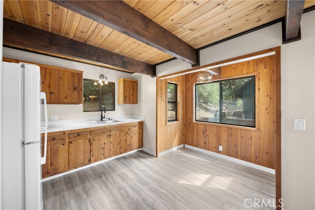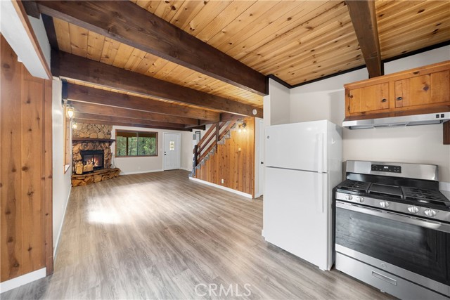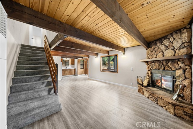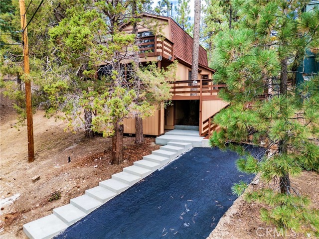 Welcome to your mountain escape in beautiful Big Bear Lake! This fully REMODELED 2-bedroom, 2-bath cabin perfectly blends modern updates with cozy alpine charm. Nestled on a 4,070 sqft lot, this home is move-in ready and brimming with features designed for comfort, adventure, and relaxation. Step inside to discover a bright, freshly painted interior with new vinyl flooring, plush carpet, and updated bathrooms. The kitchen is a showstopper, boasting sleek quartz countertops and stainless steel appliances—perfect for preparing meals after a day on the slopes. Enjoy the mountain air and BREATHTAKING VIEWS from your large wraparound deck, an ideal spot for morning coffee, evening sunsets, or entertaining friends and family year-round. But what truly sets this property apart is the oversized mudroom/storage basement equipped with a fridge, wine rack and electrical—a rare find in Big Bear! Big enough to house dirt bikes, skis, kayaks, snowboards, and more, it’s a dream for outdoor enthusiasts who want both convenience and adventure at their doorstep. LOCATION LOCATION LOCATION: you’re just a short drive to Snow Summit, Bear Mountain, Big Bear Lake, Big Bear Zoo, and The Village for shopping and dining. Plus, the home is within walking distance of the shuttle that takes you straight into town and up to the slopes—making it effortless to enjoy all that Big Bear has to offer. Whether you’re looking for a full-time residence, vacation getaway, or investment opportunity, this mountain retreat is ready to welcome you home. Don’t miss your chance to own a piece of Big Bear paradise!