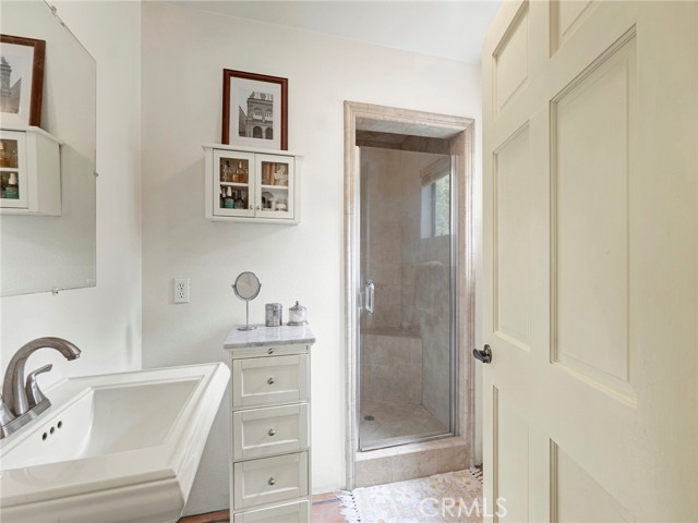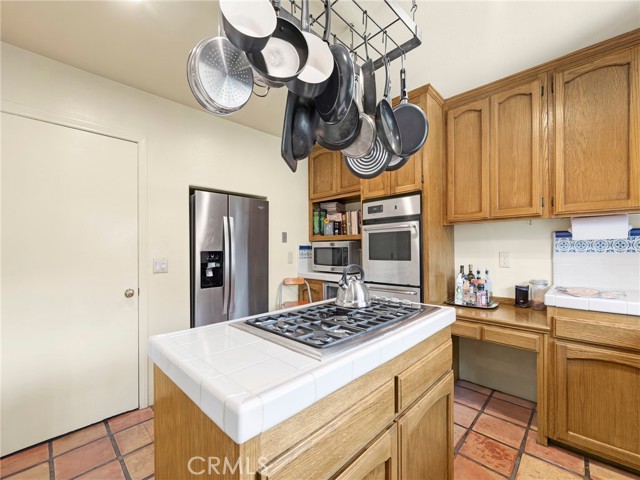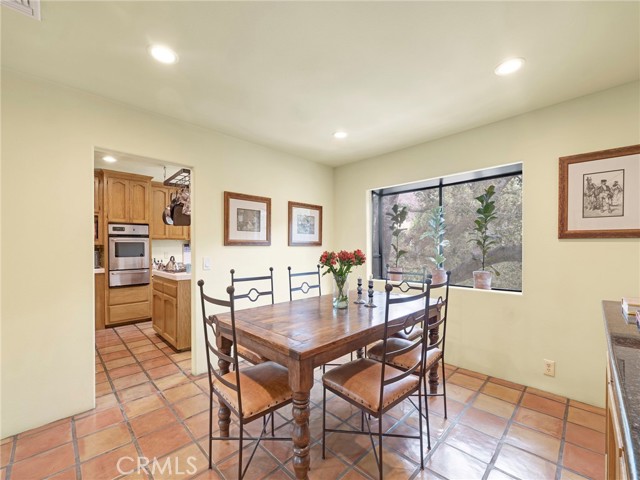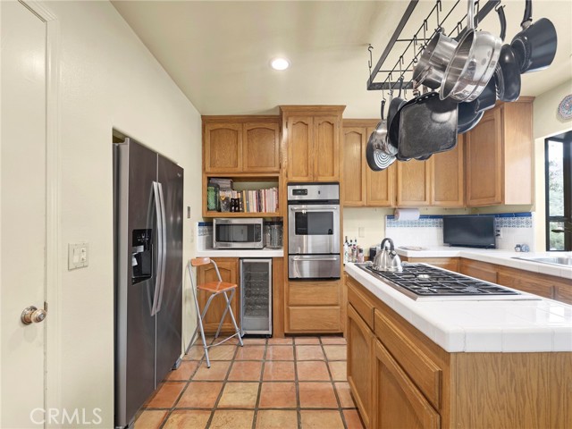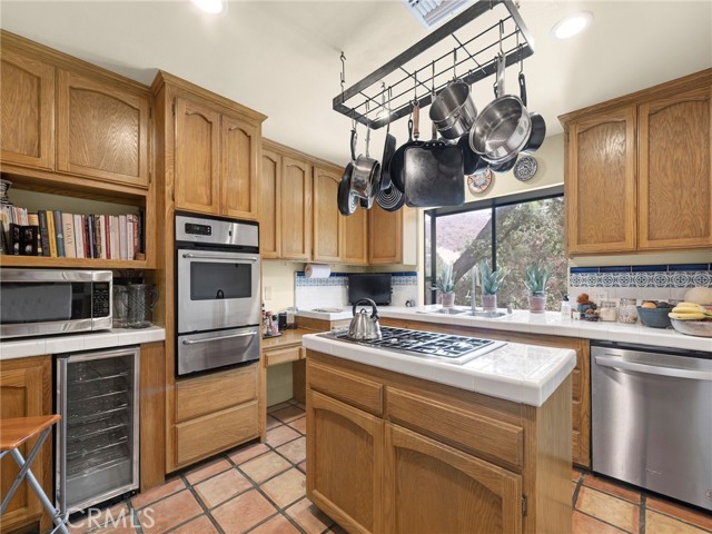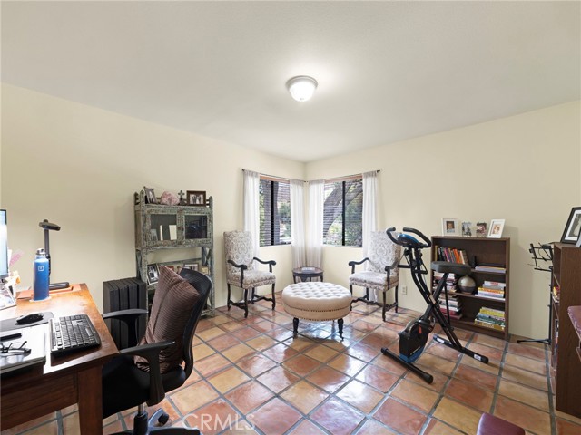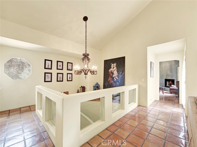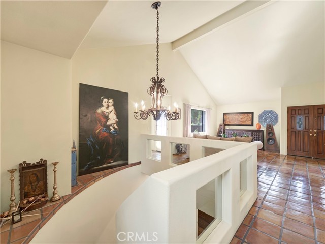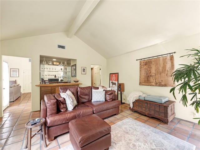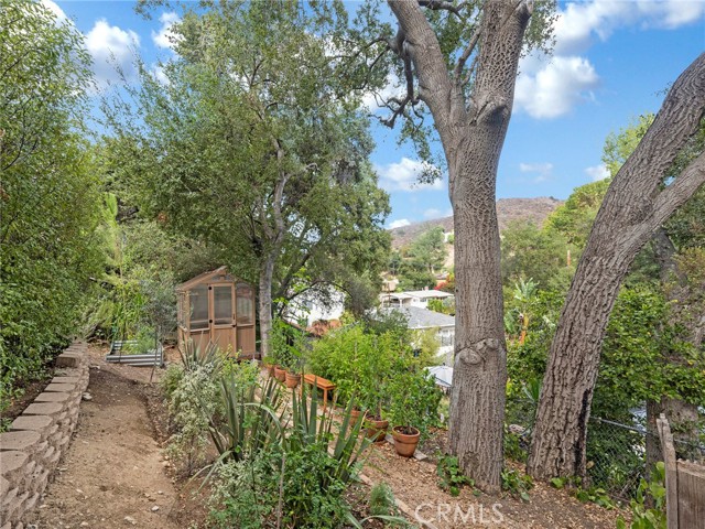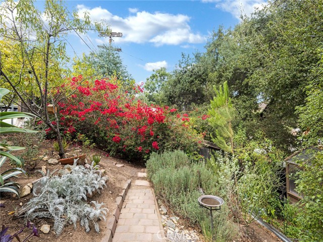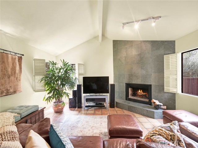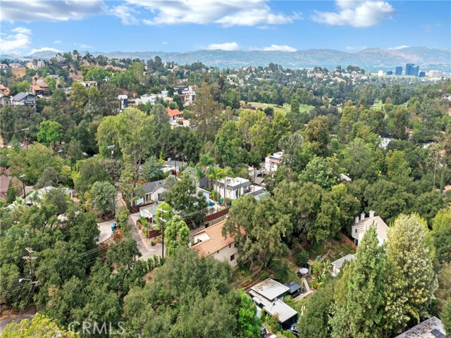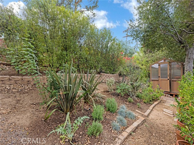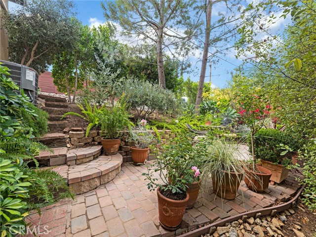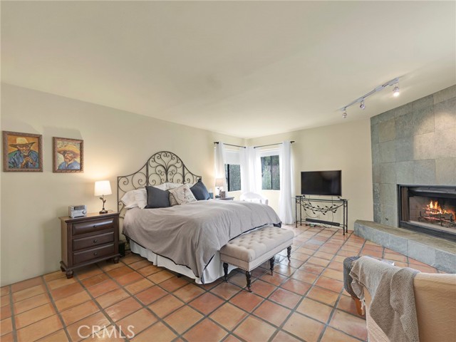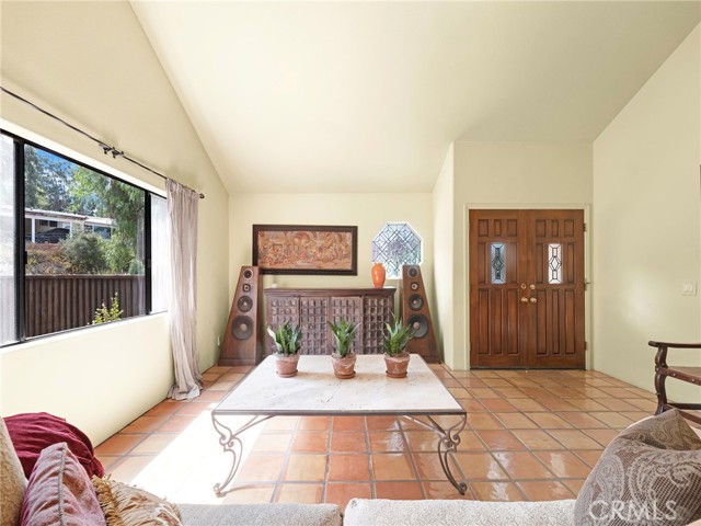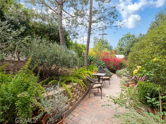Stunning Modernized Spanish-Style Retreat South of Ventura Blvd. Welcome to this beautifully updated Spanish-style home tucked away on a quiet, peaceful street at the end of Morro Drive—South of Ventura Blvd. This rare offering includes an additional lot (APN: 2172-020-054), enhancing privacy, expanding the frontage, and creating a lush sanctuary-like setting. Step inside to soaring ceilings, open-concept living, and elegant paver floors. The spacious living room is highlighted by a dramatic vaulted ceiling. There is a separate family room featuring its own vaulted ceiling, a striking tiled fireplace, wet bar, and an updated three quarter bath—perfect for entertaining. A charming deck just outside adds a peaceful outdoor escape. The formal dining room offers tranquil views of the surrounding area, and the remodeled kitchen boasts an island, stainless steel appliances—including a wine fridge—and direct access to the two-car garage with pull-down stairs to an attic storage area. Downstairs, a cozy alcove library/reading nook. There is a generously sized primary suite with a grand tiled fireplace, en-suite bath, and private brick patio ideal for relaxing or entertaining. Two additional well-sized bedrooms complete the living quarters. Recent upgrades include a new heat pump & AC system, new screens, and thoughtful maintenance throughout. Also a separate laundry room. The adjoining extra lot is a verdant retreat with lush landscaping, fruit trees, walking paths, sitting areas, a greenhouse, and a serene meditation space. Surrounded by mature oak trees and offering scenic views, this home is located just minutes from the Woodland Hills Country Club, Ventura Blvd amenities, and the Rams practice facility—yet feels a world away. A truly special property offering space, style, privacy, and location.