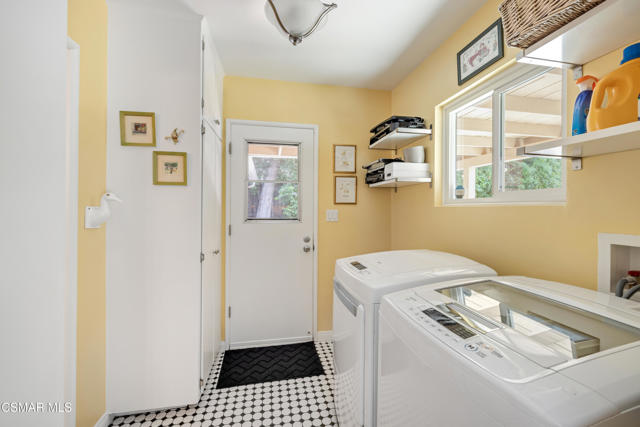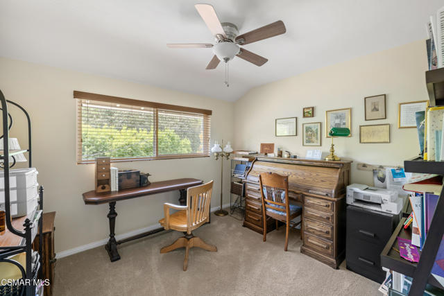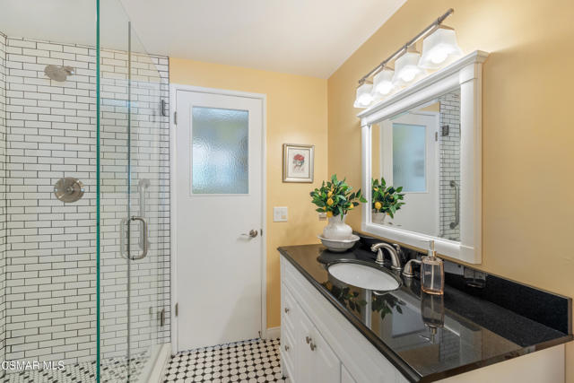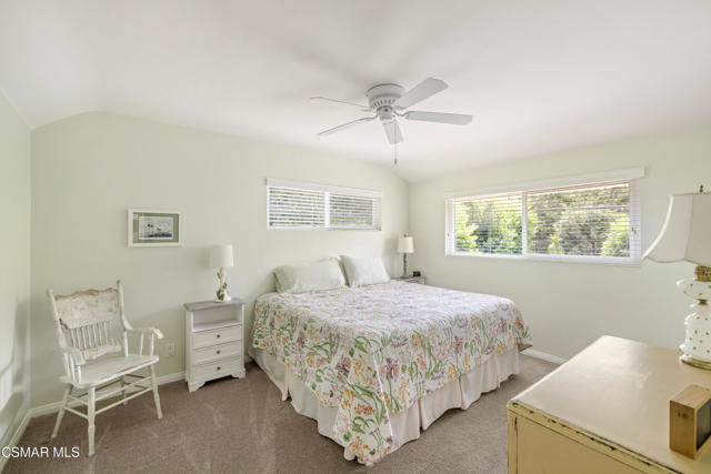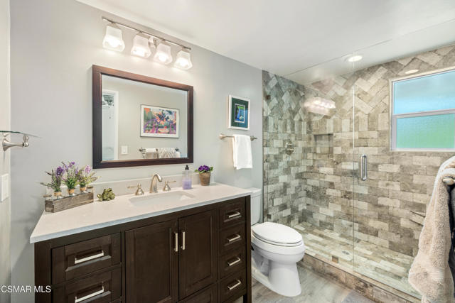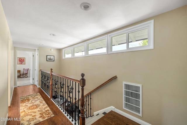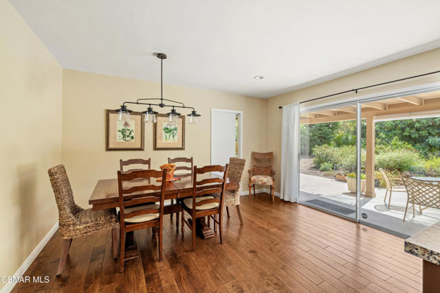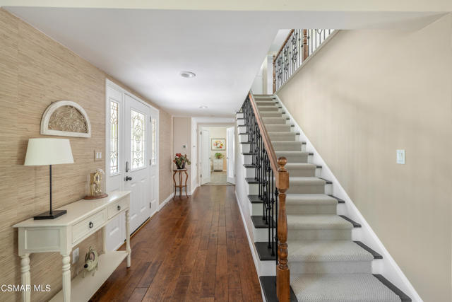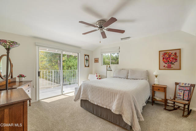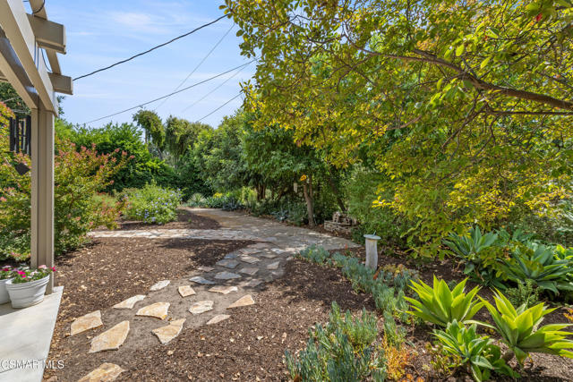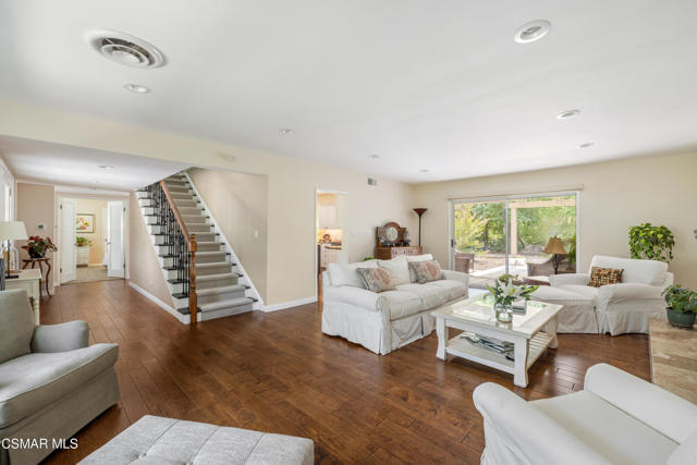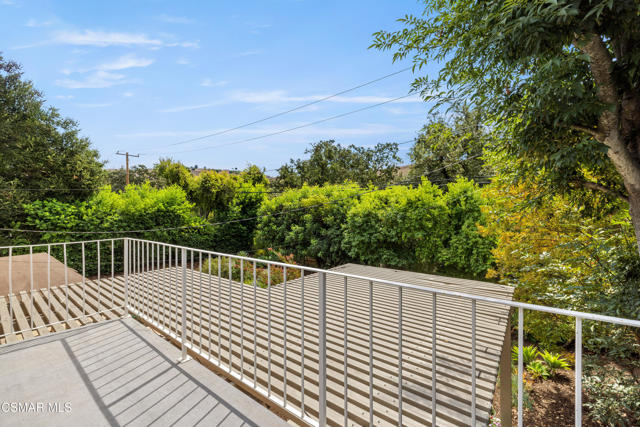 Back To Nature! Welcome home to this gorgeous 4 bedroom, 3-bathroom home in the heart of Thousand Oaks. Once you enter you will notice the open and bright living room featuring a travertine fireplace. Gourmet kitchen comes with granite counters, spacious island with seating and storage. Stainless steel appliances, travertine tiled backsplash and glass front cabinets. Downstairs full bedroom/bathroom with updated vanity and tiled shower can also be used as an office, den or hobby room. Upstairs you will enjoy two secondary bedrooms and hallway bathroom with updated vanity and tiled shower tub. Primary bedroom boasts inviting balcony, while primary bathroom has updated vanity and spacious tiled shower. Take a stroll on the walkway through the peaceful backyard, while enjoying the native plant garden and oak trees that accompany the approximately 1/3 acre of serenity. Plenty of seating and entertaining under the Aluma Wood patio cover, in this quiet location which backs to the creek and accompanying open space. Other amenities include dual paned windows, custom shades/blinds, wood flooring, indoor laundry, 2-car garage, fresh paint, newer HVAC, ceiling fans and recessed lights. Close to schools, library, parks and shopping. Come and view this welcoming home today!