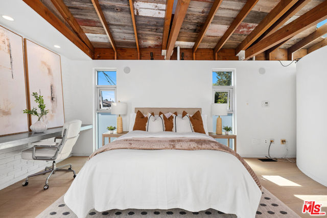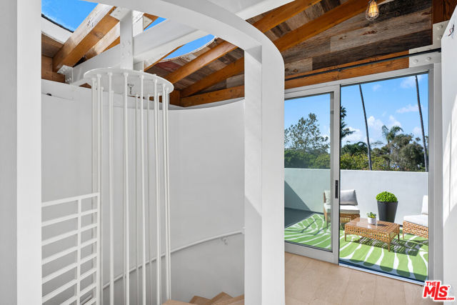 Welcome to a true Venice architectural gem designed by FAIA architect Maris Peika, celebrated for his contributions to landmarks including MOCA, the Honnold Library, and DTLA's skyline. A statement of design, comfort, and the quintessential Venice lifestyle, this residence is more than a home. Just two blocks from vibrant Abbot Kinney Blvd and a short stroll to the beach, it places you in the heart of it all. Through mystical 18th-century Jaipur doors, enter light-filled living spaces framed by expansive glass walls that seamlessly connect indoors and outdoors. Beneath a striking circular skylight, a sculptural floating nautilus staircase curves with architectural grace to connect the levels. In the chef's kitchen, matte Caesarstone countertops, aged brass hardware, and imported deVOL taps combine function and style for both cooking and entertaining. With reclaimed timber ceilings from Montana barns, dual balconies, and a skylit Carrara marble shower that brings the sky and stars into your daily routine, the primary suite is a private retreat. Two additional ensuite bedrooms provide comfort and flexibility, perfect for family, guests, or an office/art studio. Additional highlights include gated parking for two, a surf shower with copper sink and live-edge vanity, and a nearby park ideal for outdoor play with your furry friend. Blending pedigree architecture, everyday comfort, and a prime location, this residence captures the very best of Venice living. Outdoor bathroom is not permitted. Fireplace sold as-is. Square footage taken from previous listing. Seller, Broker and Brokers agents do not represent or guarantee the accuracy of the square footage, bedroom/bathroom count, lot size or lot lines, permitted or un-permitted spaces, and/or other information concerning the conditions or features of the property provided by the seller or obtained from public records or other sources. Buyer(s) & Buyers agents are advised to independently verify the accuracy of all info and to do their own due diligence through personal inspection and with appropriate professional.