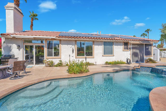 Welcome to this beautifully maintained 4 bedroom, 3 bathroom home in the heart of Palm Desert. Lovingly cared for by its original owner, every detail reflects pride of ownership and thoughtful upgrades. Step inside to find new flooring and fresh interior paint that create a bright, inviting atmosphere. The remodeled kitchen and bathrooms blend modern finishes with timeless style, making this home move-in ready. Outdoors, enjoy desert living at its finest with a sparkling saltwater pool, retractable awnings, and a perfectly situated lot that offers sweeping views. Whether entertaining or relaxing, this backyard is designed for both comfort and entertaining. This home also comes equipped with all the bells and whistles: Owned solar panels for energy savings, Remote-controlled lighting and sun shades, Lighting on timers for effortless ambiance and security. Don't miss the chance to own a rare Palm Desert gem that combines exceptional upkeep, modern upgrades, and unbeatable views--schedule your private tour today!