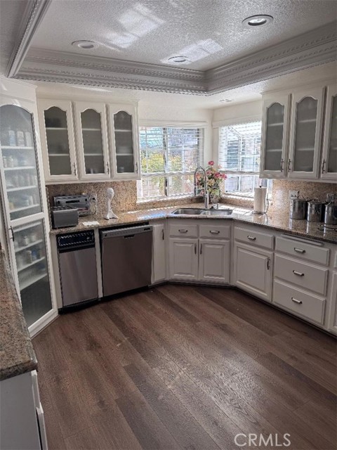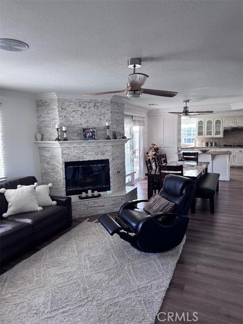 Beautifully maintained and cared for 5 bedroom 3 bath home in the picturesque Enclave of Spring Valley Lake in Victorville. This home was built and cared for by the original owner. Sprawling over 32OO square feet with 3 living areas downstairs that includes a formal living room with dining room, Family room with fireplace and additional living room with fireplace just off the large 3 car attached garage. Updated kitchen with granite countertops with built in cabinets, double oven, toaster and refuse compactor. Just off the kitchen you can entertain in your own wet bar with granite countertops. New Custom flooring throughout with crown molding and baseboards. Spacious separate laundry room. 1 bedroom downstairs currently being used as an office with a closet. 4 large spacious bedrooms upstairs with ceiling fans. Split level AC units for upstairs and downstairs to save on energy costs. Large upstairs balcony that wraps around the East side of the house with lake and sunrise views. Walk or bike to Spring Valley Lake or the Golf Course. This home exemplifies High Desert Living at its finest. Do not miss!