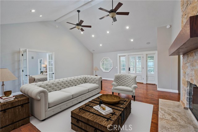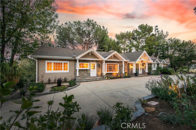 Discover an exquisite hidden gem tucked away in the picturesque hills of Chatsworth—an unparalleled retreat offering the ultimate in privacy, serenity, and natural beauty. This rare & unique executive compound is a dream come true for those seeking a tranquil escape w/breathtaking 270-degree panoramic views of LA. Situated on an expansive 26,461 sq/ft lot, this stunning property is a masterpiece of thoughtful design & modern luxury. Newly landscaped grounds are adorned w/native plants, enchanting landscape lighting, calming fountains & peaceful walking paths, all meticulously maintained w/an efficient drip irrigation system. A grand horseshoe driveway, secured by double electric gates, provides ample space for over a dozen vehicles, along with additional room for recreational toys.Blending modern farmhouse aesthetics with classic Nantucket charm, this home is designed for both sophistication & comfort. The custom front door opens to a captivating foyer filled w/natural light from abundant windows & glass sliders, all framing spectacular views. The open floor plan flows seamlessly, creating an inviting ambiance that perfectly complements the stunning surroundings. The main level boasts spacious living room & family room, separated by a striking double-sided fireplace, while a formal dining room, complete w/built-in cabinetry & patio access, offers flexibility as fourth bedroom or office. The chef’s kitchen is a culinary delight, featuring high-end appliances, custom cabinetry & a layout that effortlessly connects to the family room. The primary suite is a luxurious retreat w/private patio access, a generous walk-in closet & a spa-like en-suite bath showcasing a separate shower, soaking tub, dual sinks & custom cabinetry. A second bedroom, along with a beautifully designed laundry room equipped w/ample counter space, custom cabinets & a built-in wine fridge, complete the main level. Down a discreet staircase, the lower level unveils private sanctuary w/a third bedroom or in-law suite, offering its own separate entrance, walk-in closet, en-suite bath, and private patio access—perfect for guests or extended family. The detached garage and additional storage shed present endless possibilities, whether for an ADU, creative studio, home office, or private gym. This truly one-of-a-kind estate offers unmatched beauty, seclusion & versatility, making it a rare and remarkable find. Experience the magic of this stunning retreat in person—your dream sanctuary awaits.