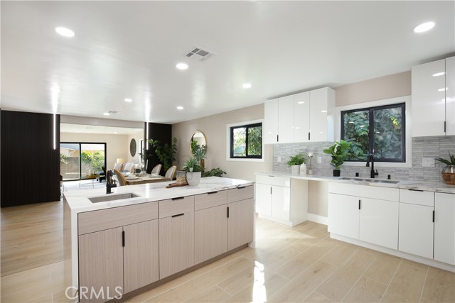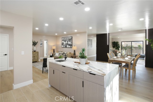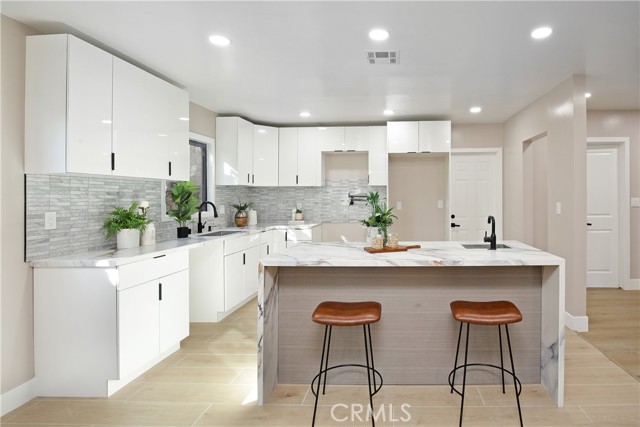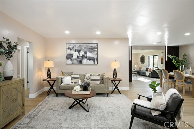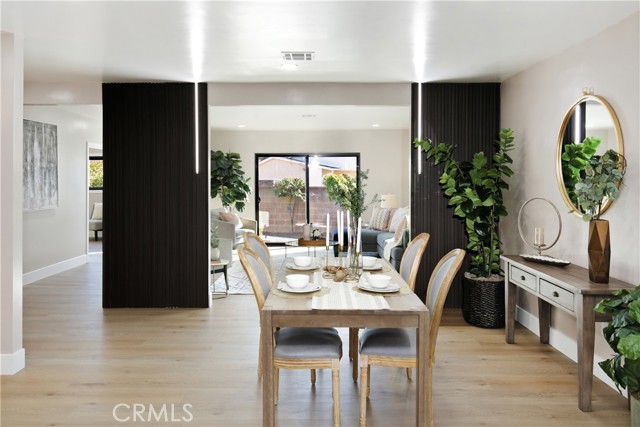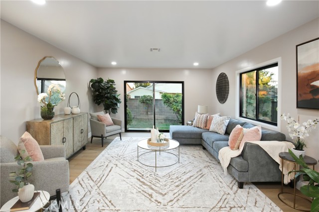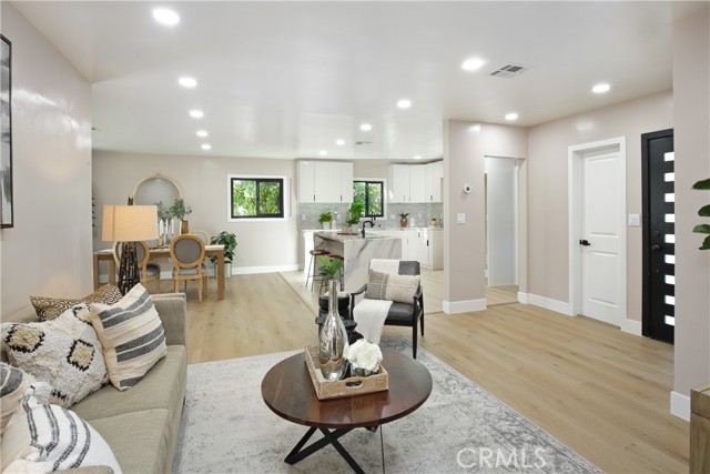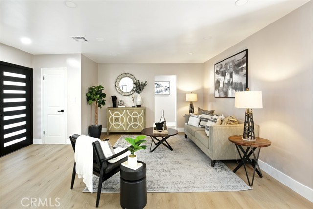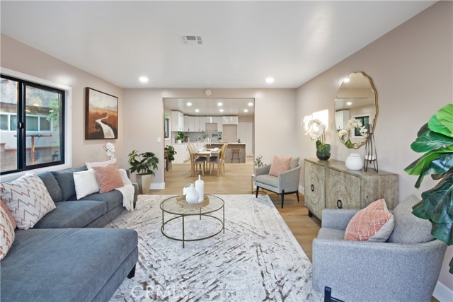 Welcome to this beautifully updated 4 bedroom, 2.5 bath home on a tree lined street offering a perfect blend of modern finishes and functional living spaces. Step inside to a formal living room, dining area, and a spacious family room highlighted by custom accent entrance walls and designer lighting. The brand-new kitchen features sleek cabinets, quartz countertops, and contemporary finishes, while all bathrooms have been completely renovated with stylish tilework and premium materials. The large primary suite includes a walk-in closet and a private bathroom, creating a true retreat. Throughout the home, you’ll find new premium vinyl plank flooring, adding warmth and durability. The home has central air and heat, new windows, and washer & dryer hook-ups in the attached garage. The property is close to both the 710 & 105 freeways for extra convenience.