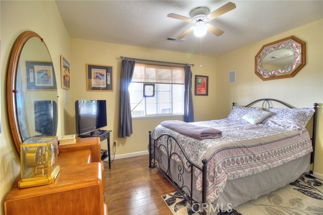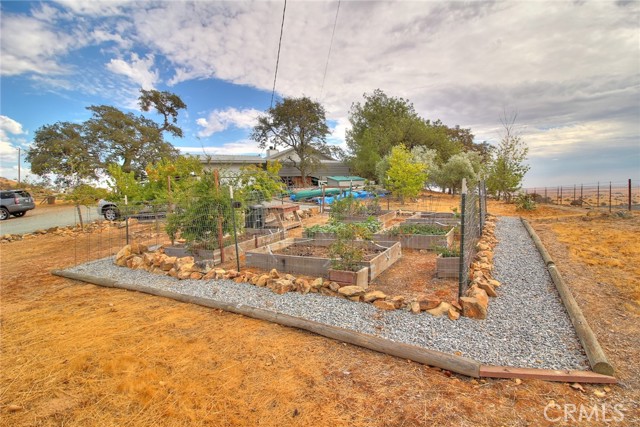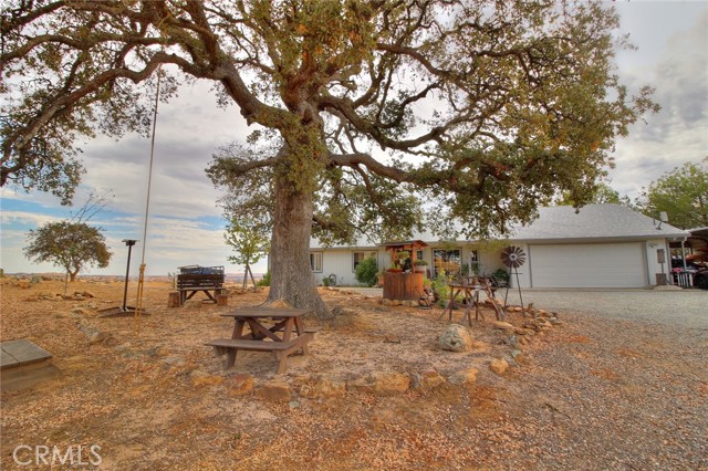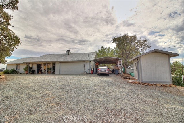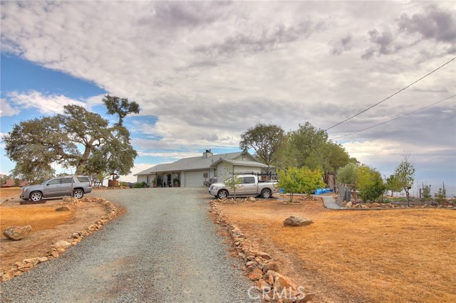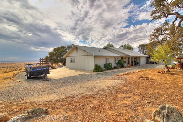 Are you ready to be amazed? This home offers some of the most breathtaking views of the Central Valley on 2.2 acres! Imagine starting your mornings w/ coffee as the sun rises over the horizon, or winding down in the evening beside your custom gas firepit under the stars. A long private driveway leads you to the welcoming entry. Inside, you'll fall in love w/ the cozy family room featuring a stacked stone fireplace w/ custom tile insets. The spacious dining room opens to the patio through sliding glass doors, while the kitchen offers an abundance of cabinetry & counter space. Both secondary bedrooms are generously sized w/ wood laminate flooring & ceiling fans, & the hall bath is complete w/ tile flooring & a shower-over-tub. The primary suite is a true retreat, featuring a huge walk-in closet, beautiful laminate flooring, & direct patio access. Additional highlights include: New roof (2023) & fresh exterior paint, 16' x 26' carport w/ electric lighting, 9' x 12' storage shed w/ loft, Solar-powered gated entry w/ keypad, RV/motorhome pad w/ septic, water, & electric hookups, Fenced garden area w/ raised beds, Slate-covered patio w/ mood lighting. The backyard feels like your own slice of paradiseendless views, serene landscaping, and a perfect setting for entertaining or relaxing