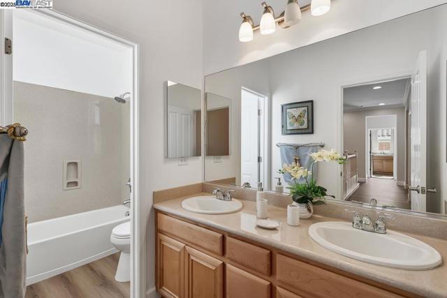 Nestled in the prestigious Stonebrae neighborhood, this 4-bedroom, 3.5-bath single-family home offers exceptional space and comfort for your family. From the welcoming entryway, the grand living and dining areas set the tone with warmth and elegance. The large open kitchen with a center island is a chef’s delight. A convenient downstairs bedroom and full bath provide the perfect setup for guests or multigenerational living. Upstairs features a versatile loft, two spacious guest bedrooms, and a luxurious primary suite with a private retreat area. Fresh interior paint, new flooring, updated lighting, and newly landscaped grounds enhance its move-in appeal. Enjoy 24-hour gated security, a world-class luxury golf course, and the highly rated Stonebrae Elementary School right within the community. Experience premium lifestyle living—right here at Stonebrae!