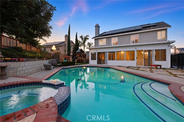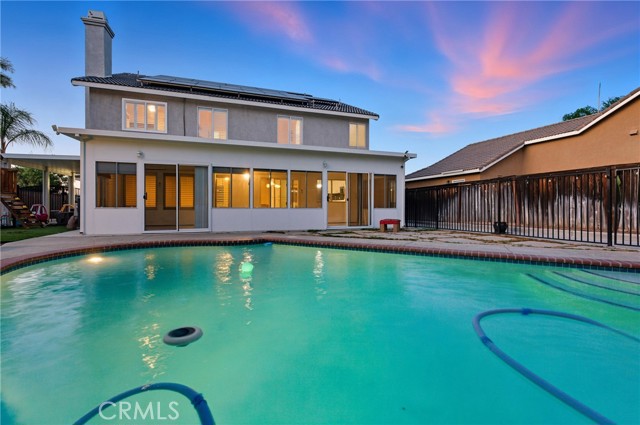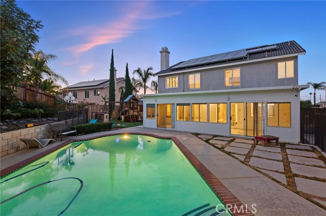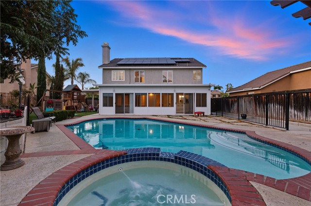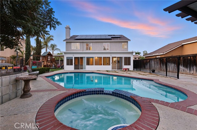 Stunning Turnkey!! POOL & SPA, 3 CAR GARAGE & RV Parking home with 17 SOLAR PANELS on a Cul-de-Sac in Prestigious South Corona's Mountain Gate Neighborhood. Santiago High School Zone. No Mello Roos, No HOA. OPEN FLOOR PLAN. Natural sunlight permeates this home which is upgraded from top to bottom. Luxurious wood flooring throughout. This 4 Bedroom 3 Bath plus Loft boasts State of the art appliances inside the Gourmet Kitchen. Smart home features galore. Energy efficient "HONEYCOMB" shades in Sunrooms. Two AC compressors will keep you cool powered by mother nature's Sun rays & Solar panels. Whole House Water Filtration System. Plantation Shutters throughout except in the Loft. Walk to Award Winning Eisenhower Elementary. Albertsons, Baskin Robbins ice cream, Banks and all shopping within Walking distance. Kid friendly backyard equipped with Jungle Gym and a termite resistant ALUMAWOOD covered Patio. Brand new built-in BBQ Station with roof and lights. Seller added legally permitted 374 sq.ft of living space which is pending public records update. This will not last!