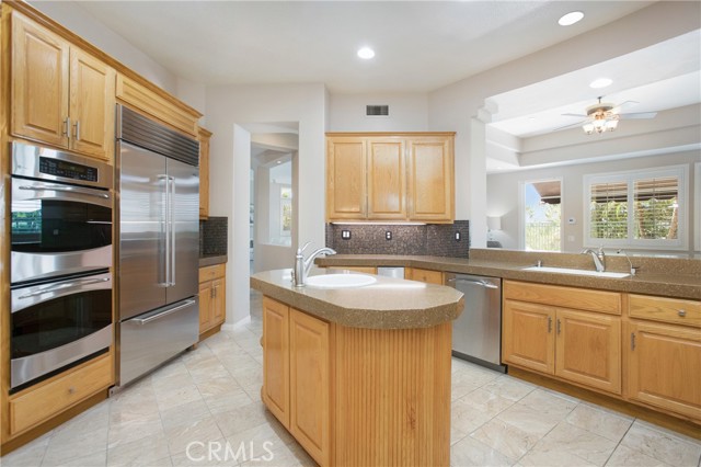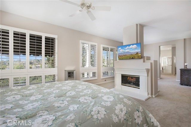 Be the “DESTINATION HOME” for family & friends while enjoying California Living at its finest in this Resort Style entertainers home. This home is located in the Prestigious Gated Community of Dove Canyon nestled against the Saddleback Mountains & perfectly positioned between 2 Fairways of the Private Jack Nicklaus Designed Golf Course. This stunning 5-Bedroom + Loft and 5 Bathroom home offers an open & airy floor plan embracing a blend of comfortable everyday living as well as the luxury of fabulous entertaining. Entering through the Double Doors to the Grand Foyer you are welcomed by the abundance of windows & French Doors that enhance the interior with warm sunshine all day. New Carpet, Marble Floors, Fresh Neutral Paint, Shutters, Ceiling Fans, Newer A/C, Furnace, Water Heater, Water Softener System & SOLAR are just a few of this homes upgrades. The high ceilings in the living & dining rooms are accented with a Fireplace, Custom Paint, Shutters & French Doors. The Gourmet Kitchen has a generous sized Breakfast Nook, beautiful Cherry Cabinets, Designer Tile, Center Island & ample counter space for creating your favorite culinary delights. The kitchen looks out to the F/R that has a Fireplace & French Door to the backyard. The Main Floor 5th bedroom has a walk in closet & is currently being used as a den complete with a cozy Fireplace & Custom Built-ins. The beautiful Sweeping Staircase leads to the Spacious Primary Bedroom with High Ceilings,Shutters, Ceiling Fan, Large Retreat area, Dual Sided Fireplace & Private Balcony with view of the golf course. The Primary Bathroom has Dual Sinks + a Vanity, Separate Glass Enclosed Shower, Oversized Jacuzzi Tub & Huge Walk-In Closet. There are 3 large secondary bedrooms each with their own bathrooms along with a Loft that is currently being used as an office with Custom Built ins. The Resort Style Backyard offers a sparkling Pool & Spa, New Built-in BBQ, Retractable Awnings, Lush Landscape and Views of the Golf Course. Enjoy life in the exclusive Dove Canyon Community featuring 24-hour Guard-Gated entry, private pool/spa, tennis & pickleball courts, sport court, playground & miles of nature trails for hiking and biking. There are also several membership opportunities at the Jack Nicklaus Signature Dove Canyon Golf Club for those golf enthusiasts. Low tax rates, easy access to shopping, restaurants, & award-winning schools. Don't miss your opportunity to live in this turnkey home & this fabulous community.