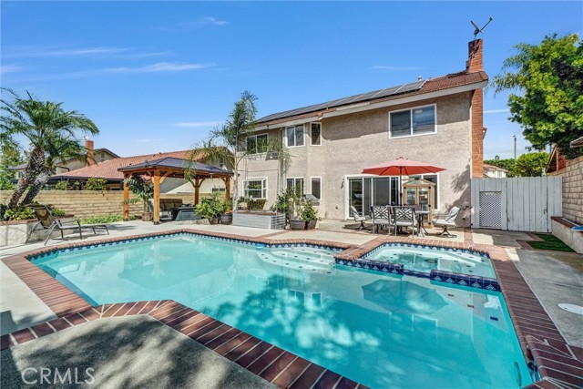 This is your chance to own a beautiful home in one of the most desirable neighborhoods, offering access to top-rated schools perfect for families looking to put down roots. Discover 4 spacious bedrooms plus a large bonus room with vaulted ceilings and custom cabinetry—ideal as a game room, home office, or media space. The first floor features soaring ceilings in the formal living room, a cozy fireplace, and an abundance of natural light that creates an inviting, open feel. A convenient main-floor bedroom and full bath provide flexibility for guests or multigenerational living. The spacious chef’s kitchen is a true showpiece, complete with stainless steel appliances, ample counter space, and an open layout that connects seamlessly to the family room and backyard—perfect for entertaining or relaxing evenings at home. Upstairs, the large primary suite impresses with vaulted ceilings, dual walk-in closets, and a bright en-suite bath offering a soaking tub and dual sinks for your comfort. Enjoy Southern California living at its finest in the large backyard, featuring a newly updated swimming pool and spa, covered patio area, a newer solar system, 4 Air Conditioning Zones and plenty of extra space for gatherings with family and friends. The community amenities include a clubhouse, two pools, four tennis courts, and two tot lots everything your family needs for fun and recreation just steps from home.