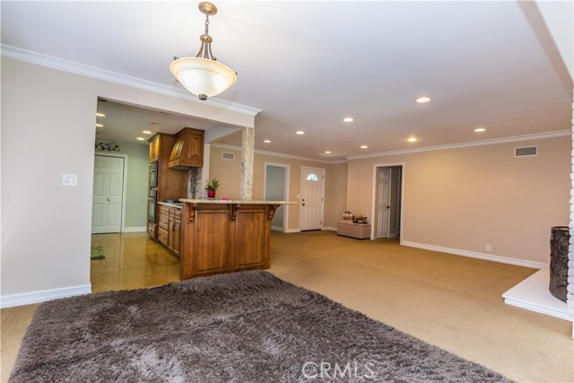 Situated in the highly sought-after San Tract of Buena Park, this Expanded home offers 4 bedrooms and 2 bathrooms with 1,949 sq ft of inviting living space on a 6,000 sq ft lot. A beautifully maintained front lawn with a mature tree and attractive landscaping creates a welcoming first impression. Inside, the open layout features a spacious living room that flows effortlessly into the kitchen. The kitchen features granite countertops, a New dishwasher, and a built-in cooktop, combining both style and functionality. The adjacent dining area flows into an expansive family room, creating a versatile space for both entertaining and everyday comfort. One of the 4 bedrooms has been opened up and used as an office. Another large room next to the family room could serve as a fifth bedroom or Bonus room. Other features include, a Remodeled bathroom, central A/C, Recessed lighting, copper plumbing. Long driveway leads to detached garage, ideal for possible RV parking. TOP RATED SCHOOLS include Buena Terra Elementary, Kennedy High School and prestigious Oxford Academy.