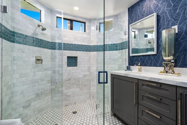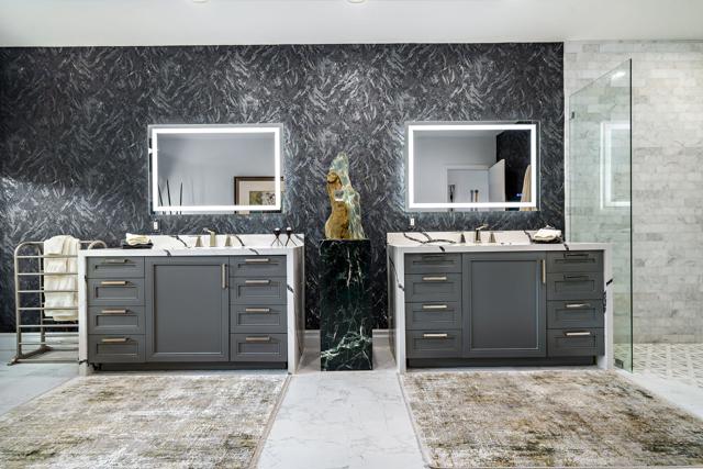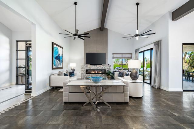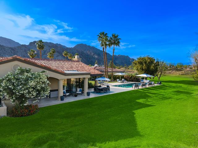 This Point lot is overlooking the triple fairways of #1, 9, & 18 of the Nicklaus Private Course. With far reaching views, the Point lot boasts Western sunsets, Eastern morning sun, Southern mountains, & the Northern desert! The oversized lot has amazing entertainment space with a beautiful saltwater pool & spa, expansive travertine patios offering unencumbered panoramic views. The interior of this home, detailed by the pictures is simply stunning! Tall vaulted ceilings, beautiful modern flooring with an architecturally designed fireplace enhancing the beauty of this home. Spacious kitchen with abundant storage & pull out pantry to enhance any chef's dreams. Large island with waterfall feature stands as an entertaining space or work area. This Legends 40 has been completely renovated to bring a contemporary open floor plan & maximize views of the outdoor living spaces. There are 2 separate living areas off the kitchen, 3 large bedrooms, all with en-suites, making this property ideal for weekend getaways or a full time residence. Throughout you will find natural stone in the primary, & secondary baths, with waterfall counter tops & Rohl polished nickel fixtures. The bathrooms also feature walls beautifully accented with wallpaper. Our desert is meant for enjoying early morning sun & warm summer nights. The outdoor entertaining space indulges those desires. Envision yourself through the outdoor pictures, relaxing, entertaining, & enjoying your new home!