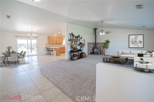 Home Is Where The Heart Is with this stunning single-story home, offering 2,161 sq ft of comfortable living space on a sprawling 20,958 sq ft lot. With 4 bedrooms, 3 bathrooms, a 3-car garage, and RV parking, this property combines functionality, privacy, and breathtaking views of the city lights and surrounding hills. Step inside to an inviting floor plan featuring a spacious family room with a cozy wood-burning stove, perfect for chilly winter evenings. The adjacent kitchen is designed for both everyday living and entertaining, with abundant cabinetry, tile counters, recessed lighting, and a large peninsula ideal for gathering with family and friends. This thoughtfully designed residence boasts two wings for added comfort and convenience. The west wing includes two generously sized bedrooms, a full guest bath, and the luxurious primary suite featuring high ceilings, a walk-in closet, dual sinks, a soaking tub, and a walk-in shower. The east wing offers another guest bath, a large laundry room with extra storage, and a private bedroom—perfect for guests or multigenerational living. Enjoy seamless indoor-outdoor living in the expansive backyard, offering plenty of space to design your dream patio, create a garden, or host summer barbecues. Mature apple trees add charm and character, while the flat, usable lot provides endless opportunities. Additional highlights include ceiling fans, double-pane windows with blinds and drapes, a wheelchair-accessible design with no stairs, and multiple parking options, including driveway, garage, and RV access. Built in 2006 with quality materials, this home sits on a paved road with easy access to Hwy 138, just minutes from Wrightwood and Mountain High Ski Resort. The community offers hiking, horse trails, and parks, making it an ideal retreat for outdoor enthusiasts. Don’t miss this rare opportunity to own a well-appointed single-level home with incredible views, ample storage, and room to grow—all in a peaceful setting with convenient access to modern amenities.