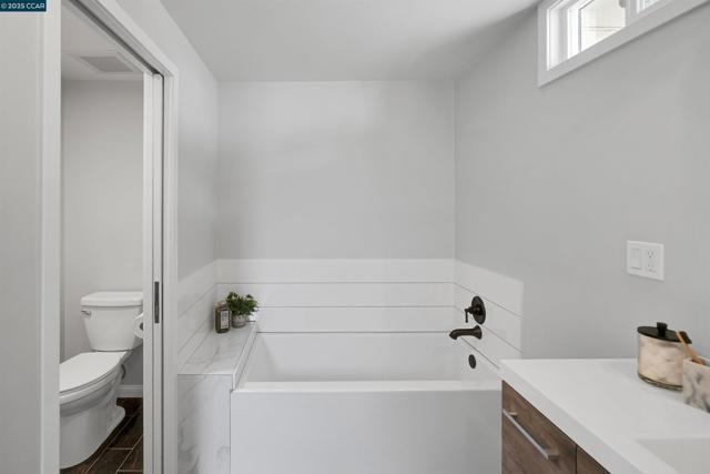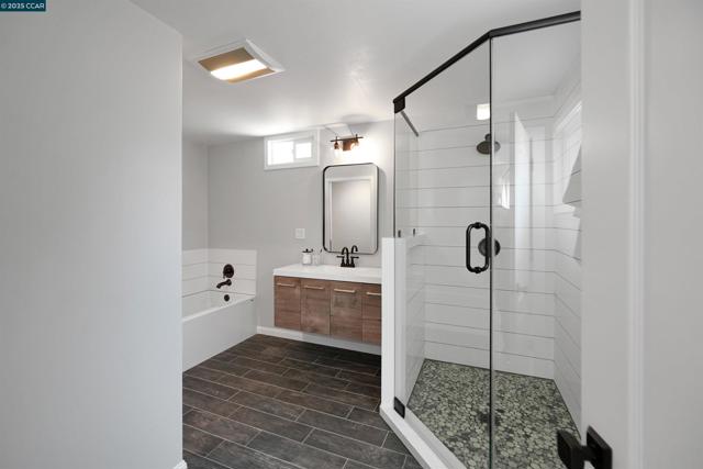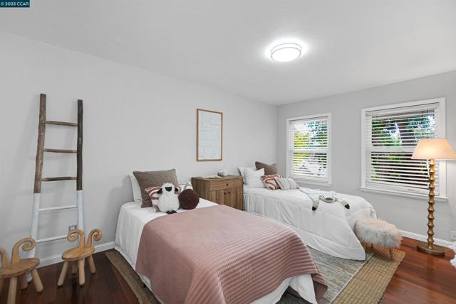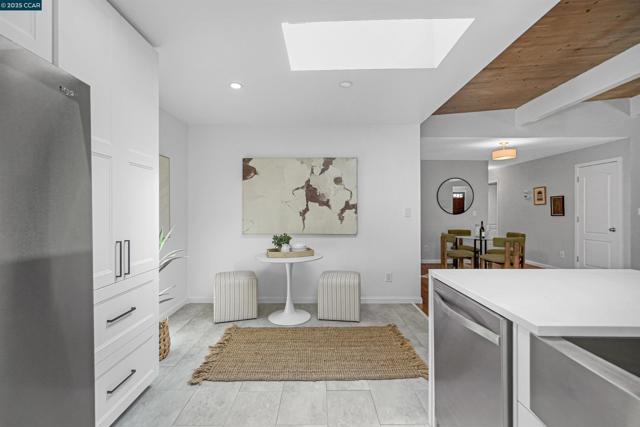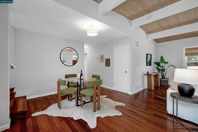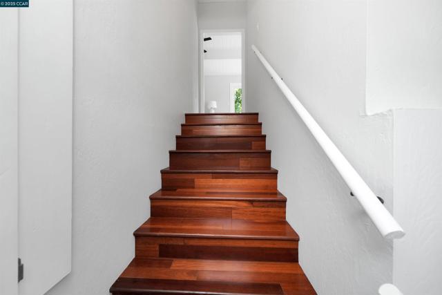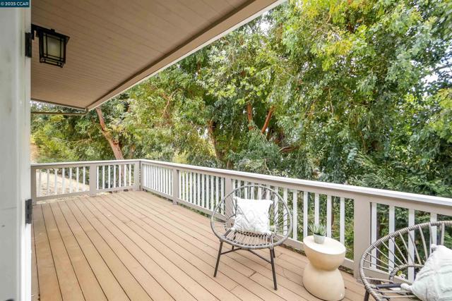 Welcome to this private 3-bed, 2-bath El Sobrante retreat on an oversized 11,000+ sq ft lot. Freshly painted interiors, dual-pane windows, hardwood floors, and stylish lighting create a warm, refreshed feel. The open layout flows from the living room with fireplace and large windows, into a dining area and beautifully updated kitchen with white shaker cabinetry, quartz counters, stainless steel appliances, and counter seating—perfect for everyday living or entertaining. Two bedrooms and a spacious bath are downstairs, while the upstairs primary suite offers a spa-inspired bath and French doors leading to a balcony deck with hillside views. Outdoors, enjoy mature landscaping, trees, and ample space for relaxing, storage, or projects. A large garage, extended driveway, and street parking add convenience. Ideally located near schools, parks, a reservoir, trails, shopping, and BART with easy access to freeways. Meticulously maintained, this move-in ready home blends comfort, functionality, and lifestyle—don’t miss it!