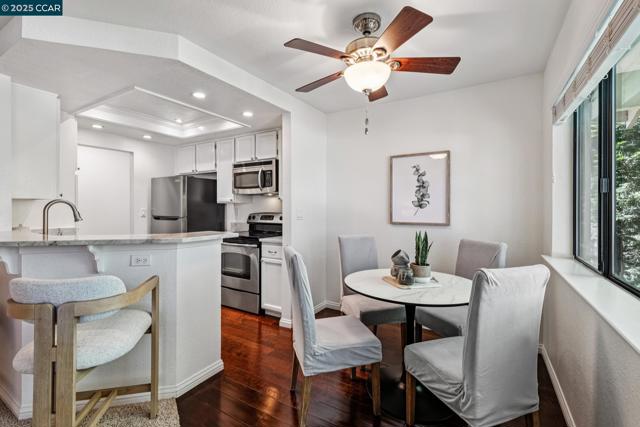 Welcome to 2531 Lucy Lane, Unit B—a peaceful 2bedroom, 2bath top-floor retreat with plenty of off-street parking, just minutes from downtown Walnut Creek. So tranquil you’d never guess how close you are to everything, this home offers a treehouse feel with dining room views into the redwoods. Recent updates include new kitchen countertops, dishwasher, refrigerator, updated baths, and fresh paint—move-in ready and stylish. Top-floor living means no footsteps overhead, just privacy and calm. The neighborhood is perfect for morning strolls and evening walks, and you’ll love being able to wander over to Morucci’s for one of the best sandwiches in town. Just a 5 minute drive to Broadway Plaza, dining, and the Lesher Center for the Arts, plus quick access to both Hwys 24 and 680 for easy commuting. Nearby BART connects you seamlessly to San Francisco and beyond. A rare combination of peace, convenience, and comfort—this home makes every day feel like the best of Walnut Creek living.
