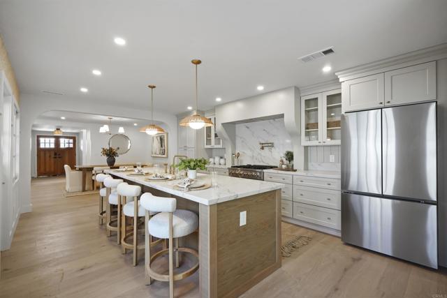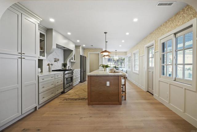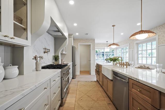 Captivating Dana Hills Retreat Near Harbor & Beaches! Coastal elegance meets relaxed Dana Point living in this fully reimagined home, just minutes from the harbor and beaches. Beyond the landscaped entry, a light-filled foyer opens to a living room with wide-plank floors, a stylish fireplace, and French doors leading to a brick patio. The gourmet kitchen boasts shaker cabinetry, a 6-burner range with pot filler, and an oversized island, with a charming Dutch door offering effortless indoor-outdoor flow. Upstairs, a sunlit family room with a cozy fireplace, dry bar alcove, and corner window walls creates an inviting space to relax or entertain. The main-level primary suite is a serene escape with a spa-inspired bath featuring dual vanities, designer tile, and an expansive glass shower with dual showerheads. Flexible bedrooms upstairs and down provide space for guests, office, or fitness. Outdoors, a pergola lounge, built-in BBQ, and lush greenery create a private retreat for entertaining. Set in the desirable Thunderbird neighborhood near tree-lined parks, coastal trails, beaches, and vibrant harbor attractions, this home blends timeless style with true coastal convenience.