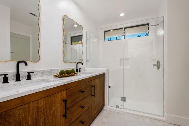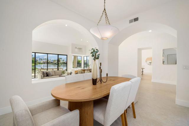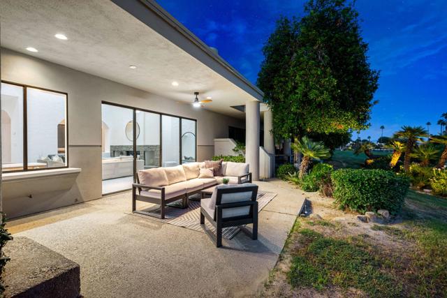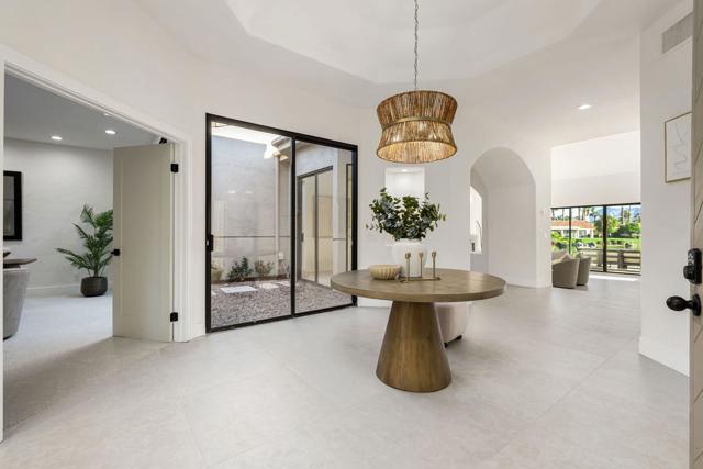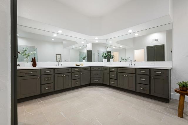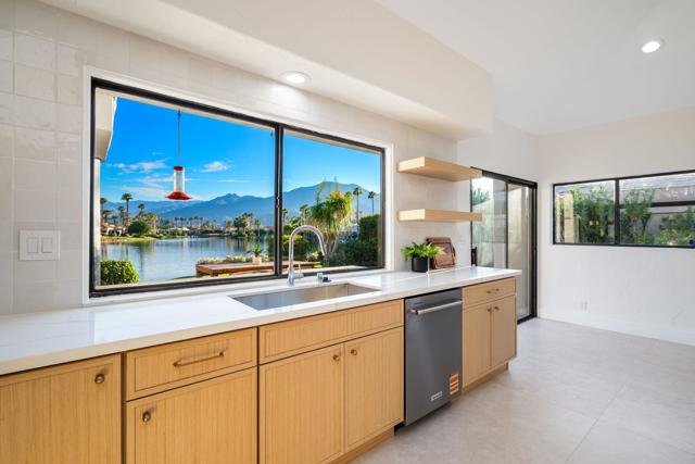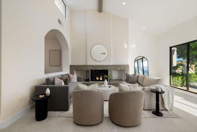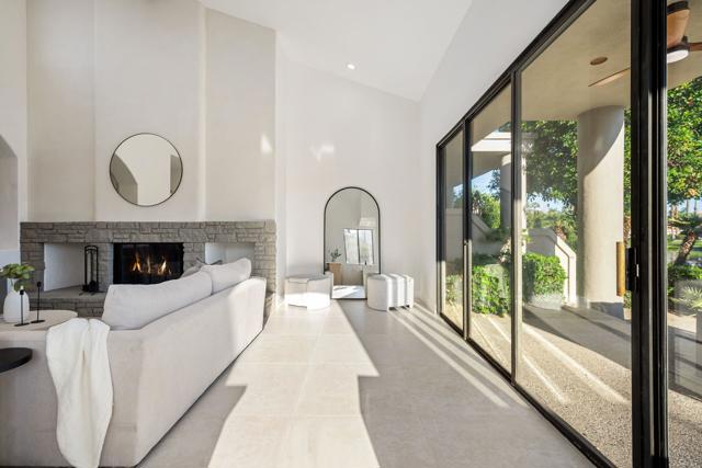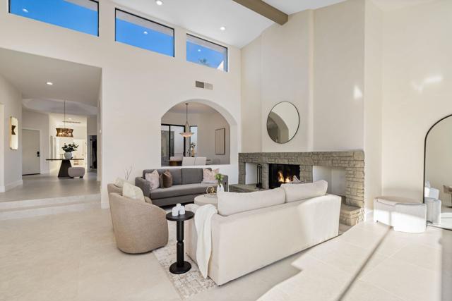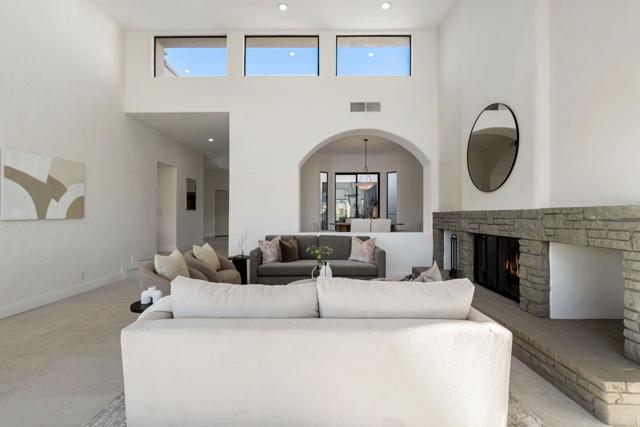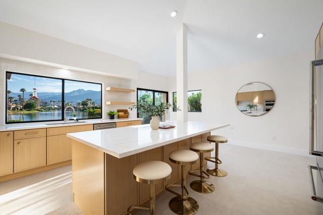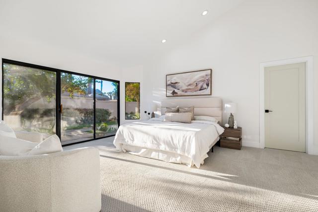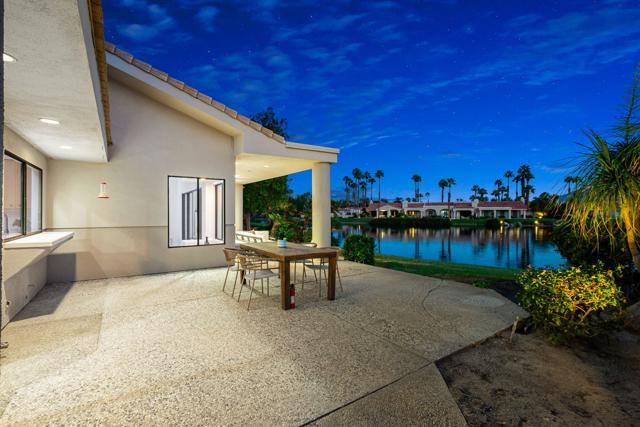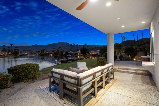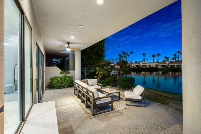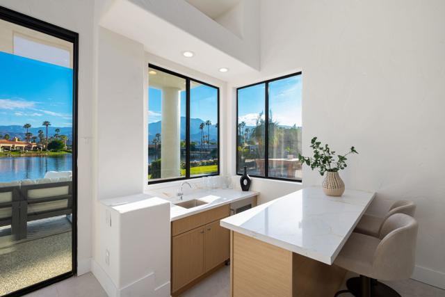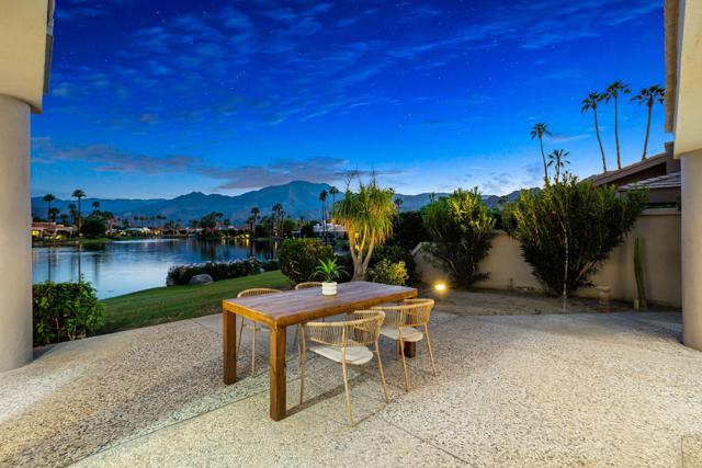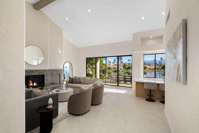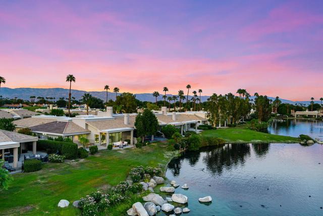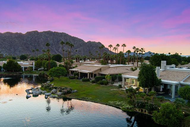 LOCATION, LOCATION, LOCATION! With coveted Southern Exposure off the rear patio, this fabulous home with views of the pristine lake and Coral and Santa Rosa Mountains, and conveniently located close to the clubhouse, is also mere steps away from a community pool/spa. Experience luxury living at its finest in this expanded, remodeled Legends 30-end unit situated in the Stadium Residential Gate in PGA West, home of the Pete Dye Stadium Course, also home of the American Express PGA Golf Tournament every January. While boasting 2895 Sq.Ft.of living space, including an expanded kitchen nook with sitting area, three en-suite bedrooms, a powder Room, remodeled throughout, including kitchen, baths, flooring, and paint, to mention a few, this home is ready for your immediate enjoyment. The primary suite features vaulted ceilings, a sitting area, a walk-in closet, an upgraded bathroom with dual vanities, and a skylight to bring in the beautiful Desert light. You can enjoy the convenience of a front-load,two-car plus golf cart garage. It is being offered furnished according to the written inventory. The HOAs include maintenance on the building and grounds, landscaping in front, back, side, and courtyards, irrigation water/equipment, exterior paint, skylights, roof, earthquake insurance, cable, internet, and a 24-hour guarded gate.