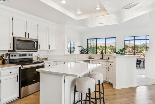 Beautifully updated 3-bed, 2-bath condo with expansive lake views from the living room, dining area, and primary suite. This light-filled, move-in ready home features a chef’s kitchen with island seating, breakfast nook, open dining area, and a new dishwasher & electric range/oven. The spacious living area includes large windows, a cozy fireplace, and built-in bar—perfect for relaxing or entertaining. The primary suite offers tranquil lake views, dual sinks, a walk-in closet, and a private bath. Two additional bedrooms provide versatile space for guests, a home office, or hobbies. Additional highlights include in-unit laundry and an oversized 2-car garage with ample storage. Located in a secure, gated community with elevator access and resort-style amenities: 4 pools with spas, tennis and pickleball courts, scenic walking trails, and 24-hour staffed security. Conveniently located near top-rated schools, shopping, dining, and major freeways. First Open Houses Sat/Sun 9/27–9/28, 1–4PM.