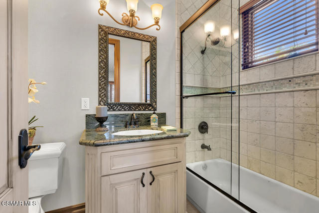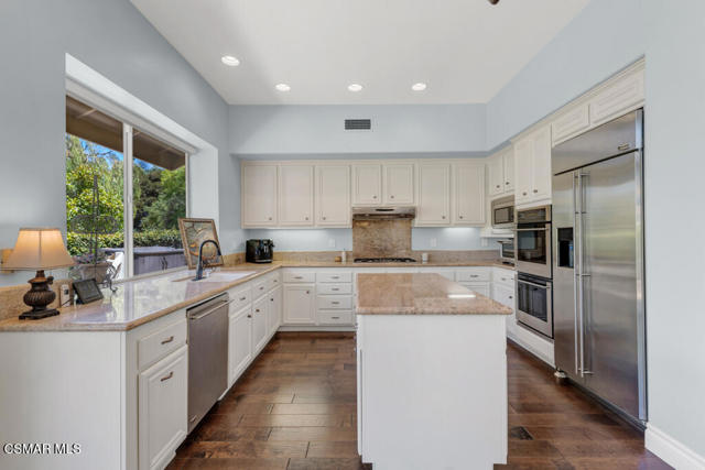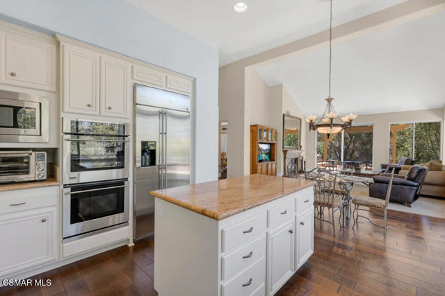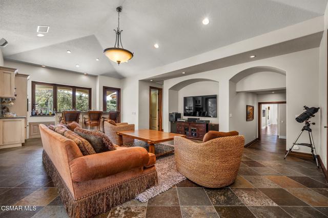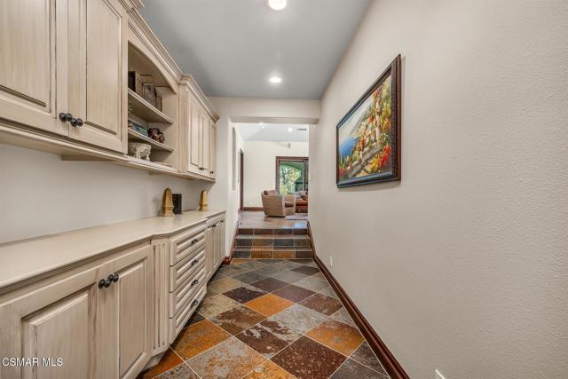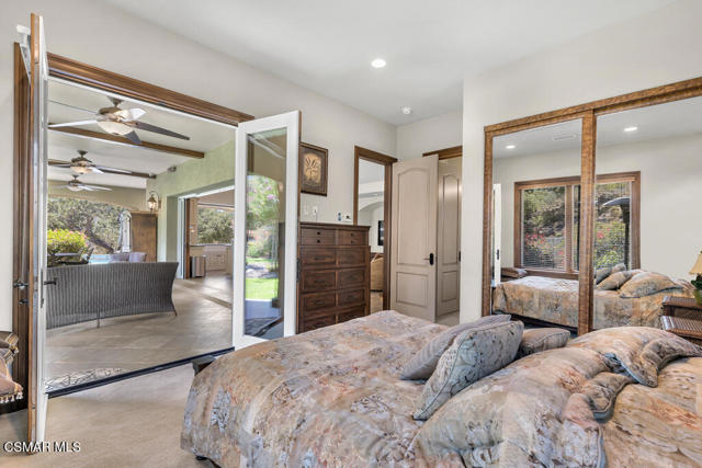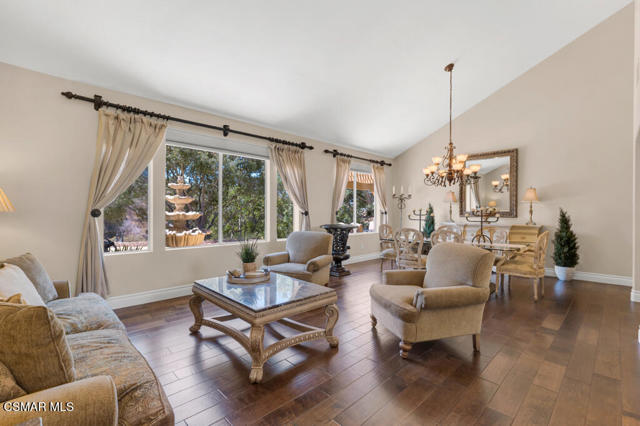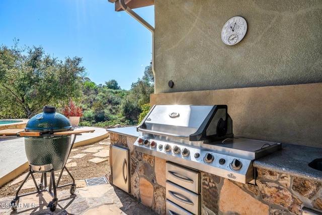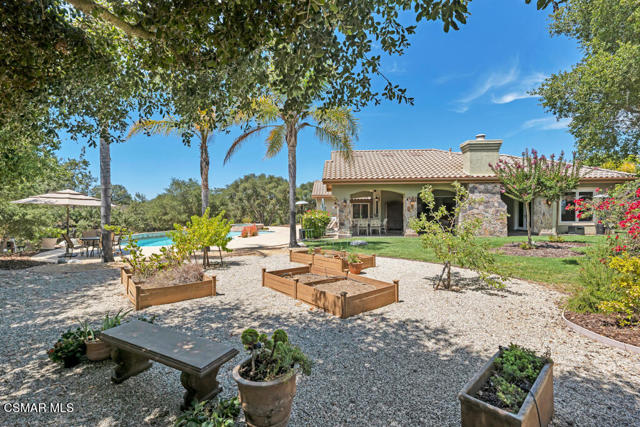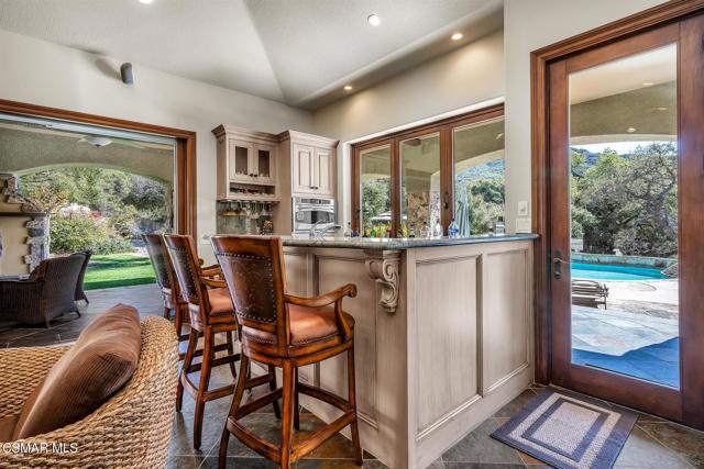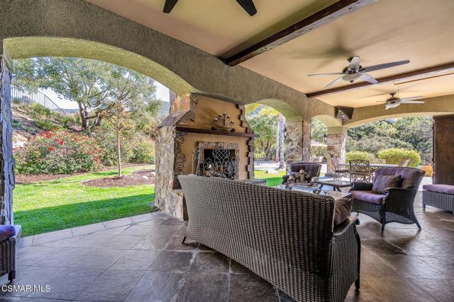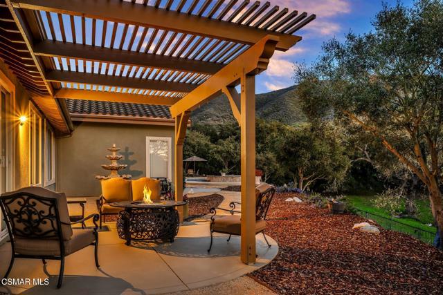 Now relisted with flexible seller financing incentives designed to lower your monthly payment. This private, single-story estate in Newbury Park offers a rare blend of timeless design, natural beauty, and lifestyle flexibility-set on over three-quarters of an acre. Tucked behind a long private drive with potential for gated access, this 4,417 sq ft residence delivers expansive single-level living, indoor-outdoor flow, and stunning mountain views.The backyard is a true retreat, backing to open space with multiple patios, a sparkling pool and spa, and a 740 sq ft covered pavilion with fireplace, TV hookups, and built-in outdoor kitchen. Fruit trees, garden beds, and mature landscaping complete the experience.Inside, wide-plank hardwood and slate tile floors connect generous living and dining spaces. The kitchen offers ample storage, a large granite island, built-in refrigerator, double ovens, and a five-burner gas range-ready to be personalized by the next owner. A full laundry room, mudroom, and an entertainer's bar with passthrough window offer practical everyday function.Custom 16-foot lift-and-slide doors open completely to the backyard, blending the interior with nature. The layout includes a guest/in-law suite with separate entrance, all en-suite bedrooms, and a spacious primary retreat. The oversized lot also offers room for a future ADU.Energy-efficient and safety-minded, the home includes solar with two Tesla Powerwall 3 units, ember-resistant roof and vents, a dedicated fire gel pump system, dual Navien tankless water heaters, fiber internet, and fresh interior/exterior paint.Motivated sellers have thoughtfully repositioned this offering to create opportunity. A rare single-level estate with exceptional privacy, just minutes from trails, open space, and the 101.