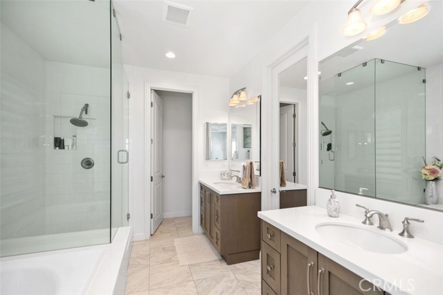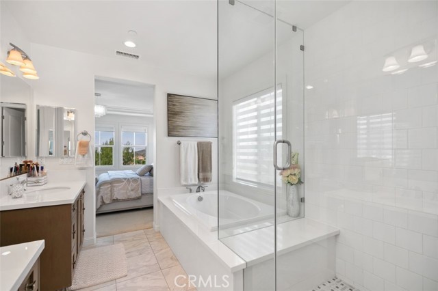 Don't miss this chance to own this beautiful like-new on-trend home on an extra-large premium view lot in desirable Baker Ranch with No Mello Roos*Enjoy builder upgrades and seller's high-end finishes in this impeccable 4 bedroom plus open loft, 3 bathroom home in the Terraces by luxury builder Toll Brothers with 3 lot premiums - size of lot, view, and no home behind*Fully-paid-for solar panels*The great room is the heart of this house with a spacious designer kitchen with center island with bar seating, wood floor-to-ceiling cabinets with spice racks, soft-closing doors and drawers, beautiful herringbone full backsplash, a new Subzero built-in refrigerator, Caesar stone countertops, wood-like ceramic tile floor, modern lighting and a custom walk-in pantry*The dining area is large with upgraded stack-back sliding doors providing seamless indoor-outdoor living*The family room completes the open concept plan with a fireplace, custom built-ins and shelving, and lots of windows bringing in natural light*The downstairs bedroom has a ceiling fan and the guest bath has a shower*As you head up the modern staircase with premium railing and upgraded wood trim, you'll see the large open loft with entertainment center ready for game and movie nights*The beautiful primary bedroom is large and has amazing views for miles*The primary bathroom is luxurious w/dual vanities and a separate shower & tub, and the large walk-in closet has closet organizers*Two secondary bedrooms share a bathroom w/tub/shower*One has a Juliet balcony while the other has a walk-in closet*The good-sized laundry room is upstairs*Head out to the yard and you will be amazed at the size of the yard and the panoramic views towards both the mountains & the sea*There is an expanded covered patio w/ceiling fan & TV outlet, a large deck w/a huge firepit to enjoy the view & relax, a fountain, & a large play area*The 2-car garage has a high-end poured epoxy floor finish, hanging cabinets & a roll-up door*Amenities: roller shades, closet organizers, offset tiles, neutral carpet, tankless water heater, Puronics water system, instant hot water system, TuffSkin counter surface protection, pre-wiring for surround sound, additional lighting & J-boxes for fans, artificial turf, upgraded hardscape, rain sensor & more*Enjoy Baker Ranch amenities w/several pools, spas, tennis, pickleball, basketball, volleyball & other sports courts, bbqs, parks, clubhouses, walking/biking trails & even a pet park*