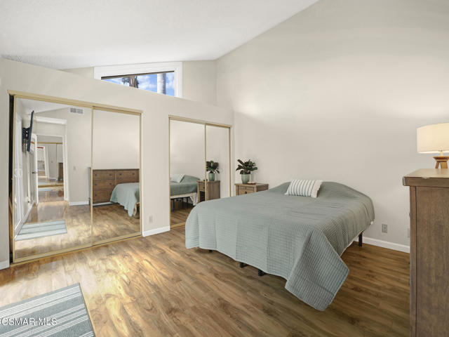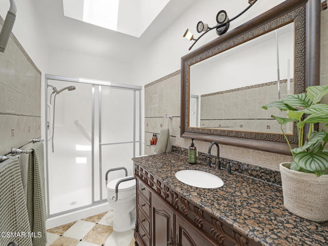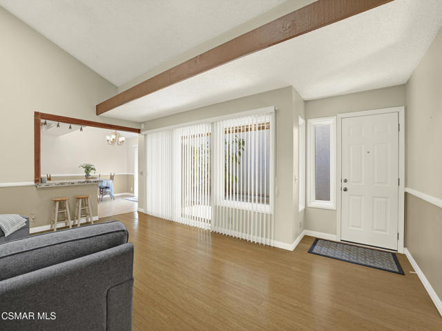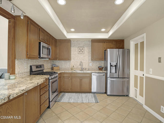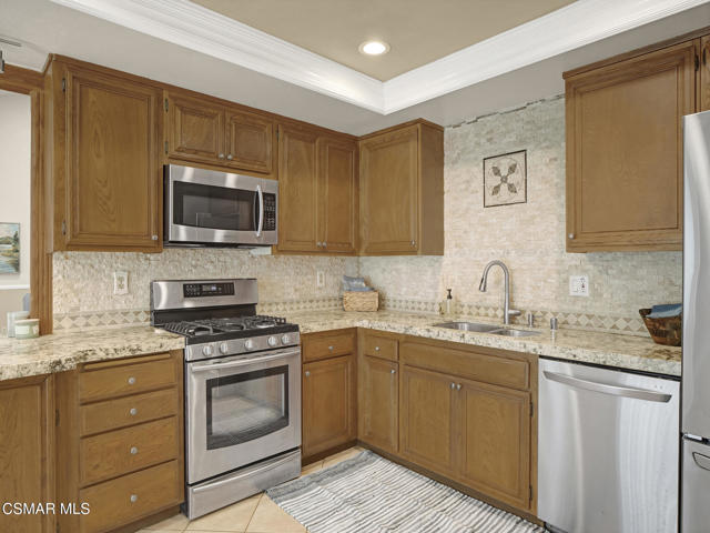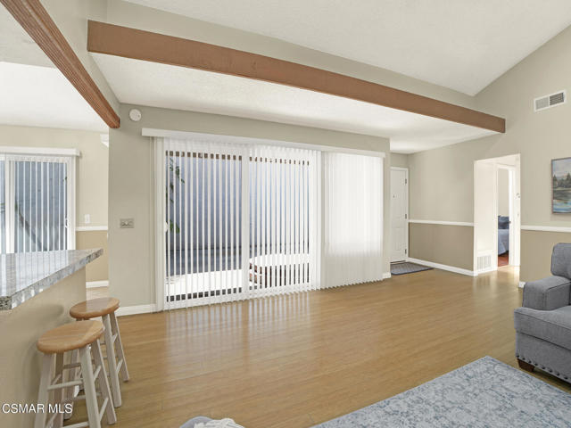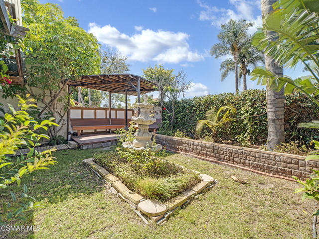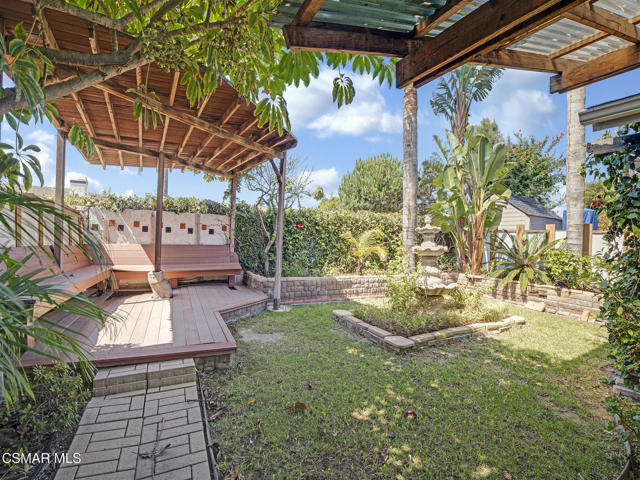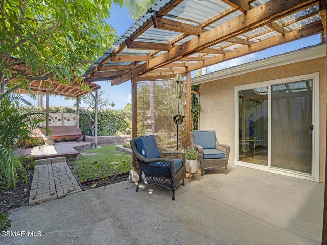 This charming single-story home in the desirable Laurelwood tract offers 2 bedrooms, 2 bathrooms, and 1,232 sq. ft. of comfortable living space. With its neutral tones, abundant windows, and vaulted ceilings enhanced by skylights, the home feels bright, airy, and inviting. Inside, you'll find rich wood flooring, upgraded windows and slider, and a stunning full-length brick fireplace that anchors the spacious family room. The sizable eat-in kitchen features granite counters, a custom tile backsplash, recessed lighting, and stainless-steel appliances--perfect for casual meals or entertaining. The large primary suite includes double closets for ample storage, while the secondary bedroom is equally generous in size. Both bathrooms have been beautifully upgraded with tile floors and walls, skylights, modern vanities, and stylish fixtures. Step outside to your own private retreat: a tropical backyard oasis with mature trees, multiple seating areas, and plenty of shade for relaxation. The expansive side yard also includes a spa for added enjoyment. Conveniently located near top-rated schools, parks, and shopping, this home combines comfort, style, and convenience in one of Camarillo's most sought-after neighborhoods.