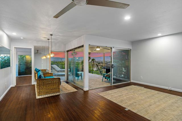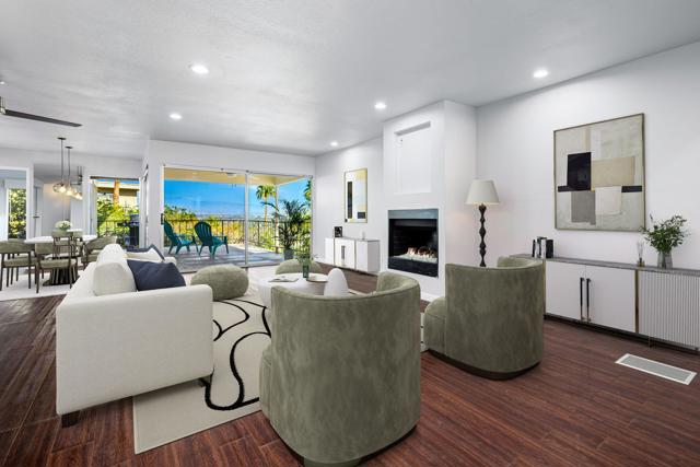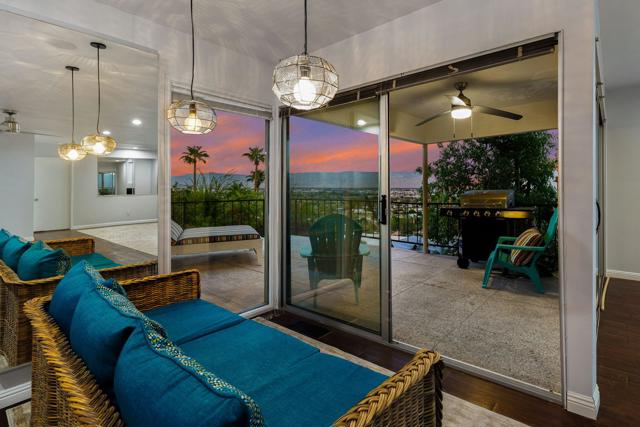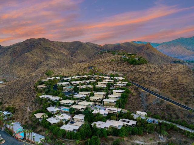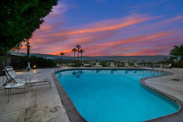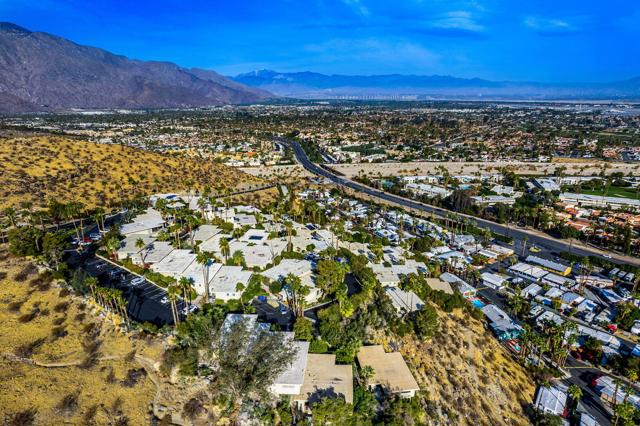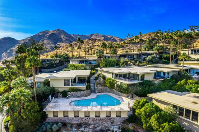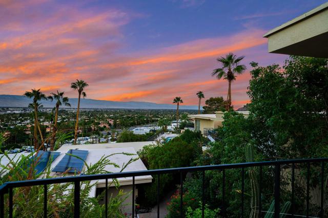 Perched above the valley floor and nestled into the mountainside, sits the iconic community of Rimcrest. Built in 1967, and designed by Leroy Rose & Harold Carlson, the association sits on nearly 12 acres and houses just 51 condos. The only hillside development in Palm Springs, Rimcrest is located just under the former home of Bob Hope, and the panoramic views of the valley and mountains are just unbeatable. This 2 bedroom, 2 bath condo offers 1,600 sq ft of living space and is located on the 2nd level from the top of the development, making the views absolutely spectacular. Enjoy an open concept living area with a reimagined, extra-large kitchen featuring loads of storage and an office area. Spectacular views can be enjoyed from the living area, primary bedroom, and of course the deck. Each bedroom offers a fireplace feature and walk-in closet, and both baths feature walk-in showers. Recent updates include: fresh interior and patio paint, added baseboards, updated electric panels and wiring, travertine tiled front patio, structural updates below the deck. One of the community's three spas is just steps away and is the perfect place to unwind. Stunning views greet you at every turn in Rimcrest, including at the community's two sparkling pools. Come and see what makes this location so special!