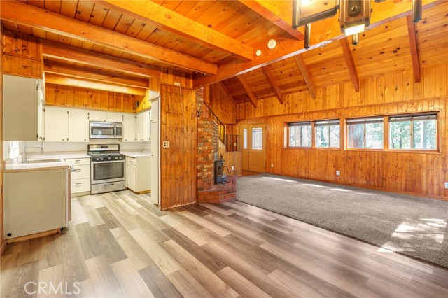 Nestled in the desirable Upper ROWCO area of Running Springs, this inviting 3-bedroom, 2-bathroom home is the perfect blend of rustic charm and modern comfort. With a bonus loft featuring built-in double bunk beds, there’s room for the whole family – and then some! Step into the cozy living room with vaulted knotty pine ceilings and walls, and warm up by the wood-burning insert after a day on the slopes. The open-concept layout flows seamlessly from the living area into the dining space and kitchen, complete with a gas stove, built-in microwave, dishwasher, and plenty of storage. Enjoy added convenience with an attached two-car garage that includes laundry hookups, plus a separate storage shed. The fenced backyard features a charming playhouse, while the front porch offers a peaceful spot to enjoy your morning coffee. Located just minutes from local ski resort and scenic hiking trails, and with easy access for commuters, this home is ideal for full-time living or as a weekend getaway. Don’t miss your chance to own a slice of mountain paradise!