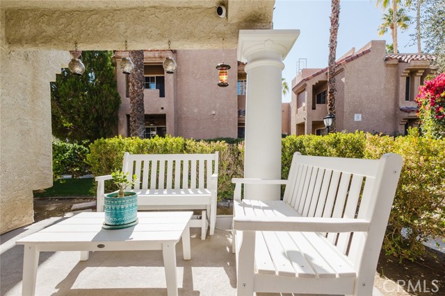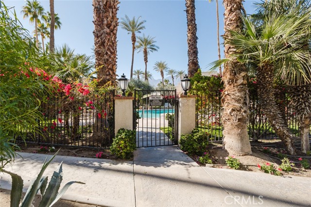 Welcome to an incredible opportunity to experience the true joy of living in a stunning one-bedroom, one-bathroom stand alone home located in the exclusive Esprit community in South Palm Springs. This exceptional single-story casita is an absolute gem, offering a bright and sun-filled living space with no stairs and no neighbors above, making it the most sought-after unit in the entire complex. Situated just steps away from the pool and boasting high ceilings, this stand-alone casita has been meticulously updated with top-quality craftsmanship and materials. It features a range of modern amenities, including a new A/C unit installed in 2016, upgraded electrical systems with recessed lighting, and stylish light fixtures and ceiling fans. The home also boasts a brand new tankless hot water heater, ensuring your comfort and convenience at all times. Step inside and you'll be greeted by a beautifully appointed interior. The casita showcases new full glass panel front doors, gorgeous porcelain tile flooring, and elegant 4" baseboards throughout. The kitchen is a chef's dream, featuring brand new Frigidaire stainless steel appliances, Corian countertops, and plenty of storage space. The bathroom has been tastefully updated, and the home even includes a washer and dryer for your convenience. Step outside onto your private patio and be immersed in the breathtaking beauty of your surroundings. The casita offers high vaulted ceilings and an abundance of natural light, creating a warm and inviting atmosphere. From your patio, you can enjoy stunning views of the majestic San Jacinto Mountains, framed by a lush Japanese boxwood hedge and vibrant Bougainvillea. And with the main pool and hot tub just steps away, you'll have everything you need to relax and unwind. The Esprit community, with its 120 homes, offers a range of fantastic amenities, including two heated pools, spas, and tennis courts. The lush landscaping adds to the overall appeal, creating a tranquil and serene environment. And with Trader Joe's, Starbucks, Target, hiking trails, and the Tahquitz Creek Golf Resort all within walking distance, you'll have easy access to all the conveniences and activities that Palm Springs has to offer. This move-in ready home is truly a must-see. Don't miss out on this rare opportunity - schedule your viewing today!
