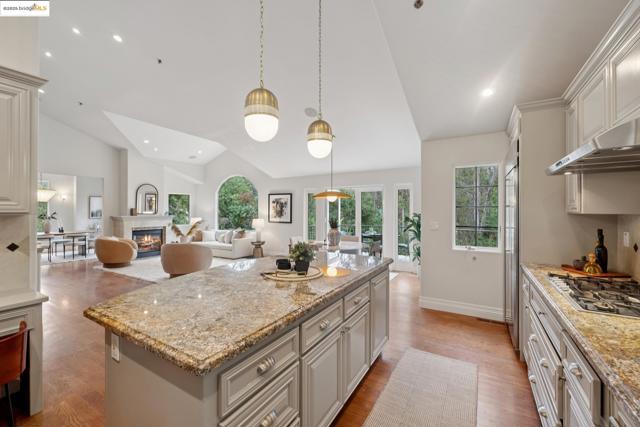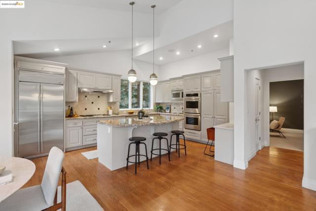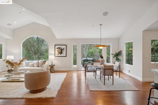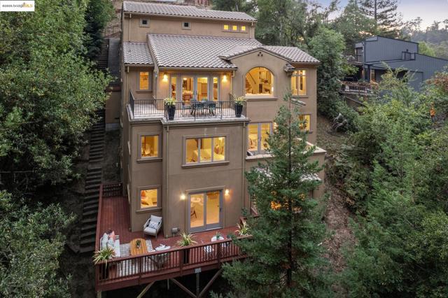 6389 Westover is a spacious and inviting Piedmont Pines Mediterranean contemporary with peaceful verdant views. On the main level, soaring ceilings, large picture windows, and a gas fireplace set the tone in the living room. The adjacent formal dining room, wet bar, and large eat-in chef’s kitchen with island that opens out to a sunny patio deck make entertaining options easy. Also on the main level: half bath and cozy family room with fireplace and built-in shelves. The second level features the primary suite with deluxe walk-in closet, sizable bathroom, and private patio. Two additional bedrooms, a second full bath, and the laundry room round out this level. Finally, the third level includes a fourth bedroom, full bath, an additional family room or potential home office/ workout space, and opens to an expansive wrap-around deck looking out to the surrounding trees and hillside views. A 2-car attached garage with storage and interior access provide everyday convenience. Not to be missed!