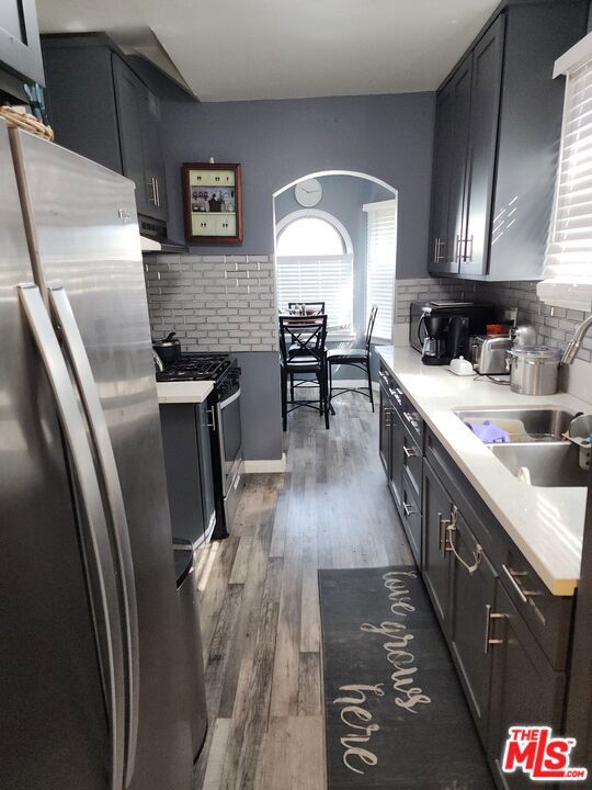 Welcome to Manchester Square! This Spanish-style home boasts character and numerous upgrades. The bright, spacious living room features high ceilings, an arched picture window, and a charming mantle with a fireplace. The formal dining room opens to a courtyard through French doors. The remodeled galley kitchen, complete with solid surface counters and ample cabinets, adjoins a separate breakfast room. The central hallway includes built-in drawers and cabinets. There are three well-sized bedrooms with walk-in closets. Additional upgrades include custom dual-pane windows, a newer roof, and central air conditioning and heating. The front yard features drought-tolerant landscaping. The large lot offers great potential for the addition of an ADU. Located just minutes from LAX, So-Fi Stadium, Intuit Arena, The Forum and Metro lines.