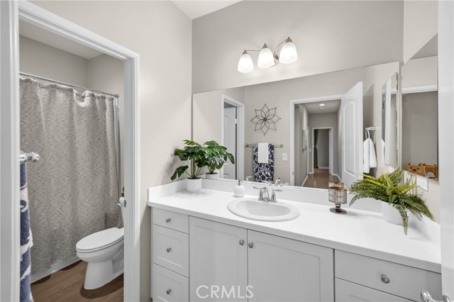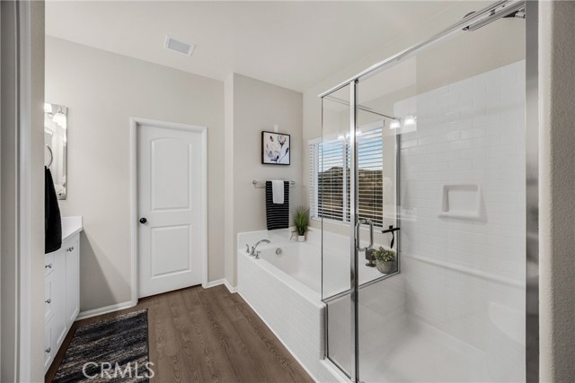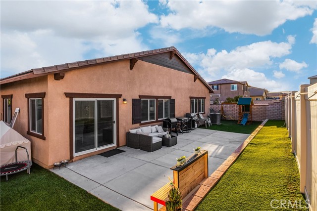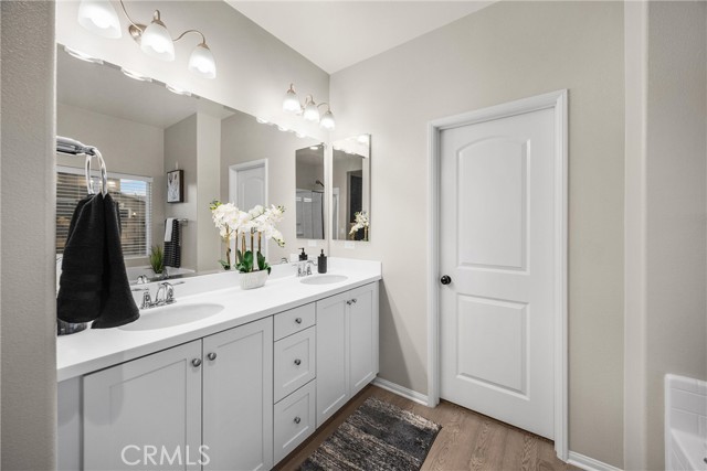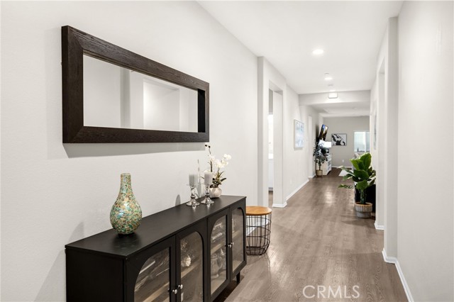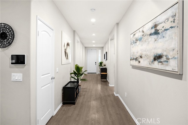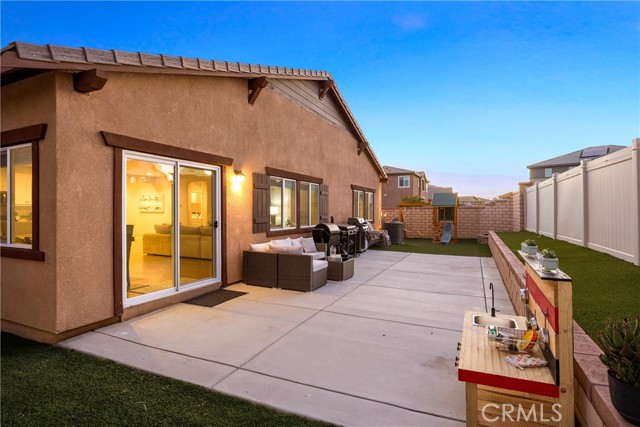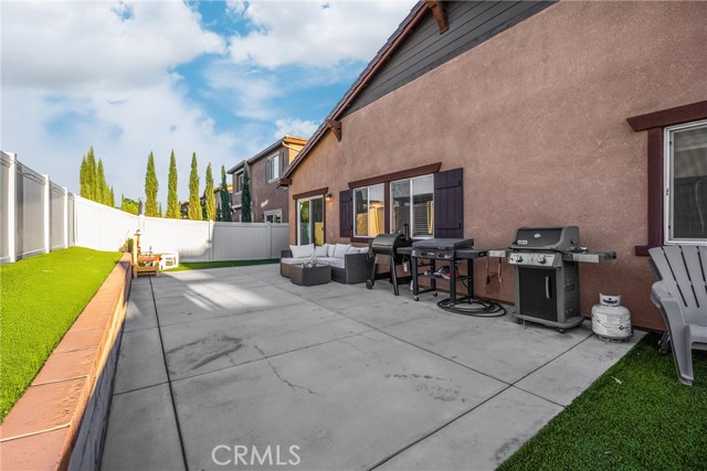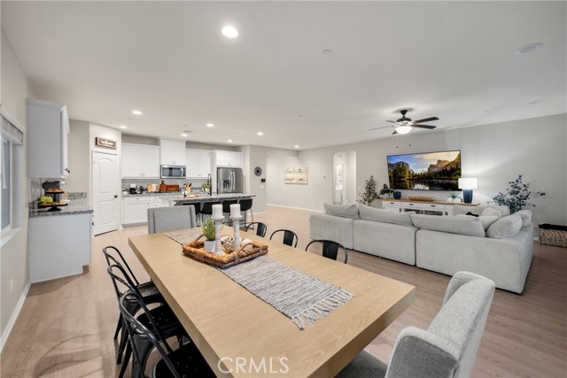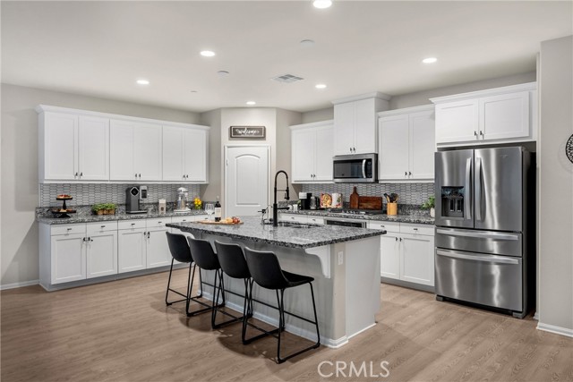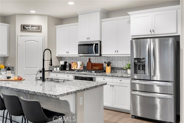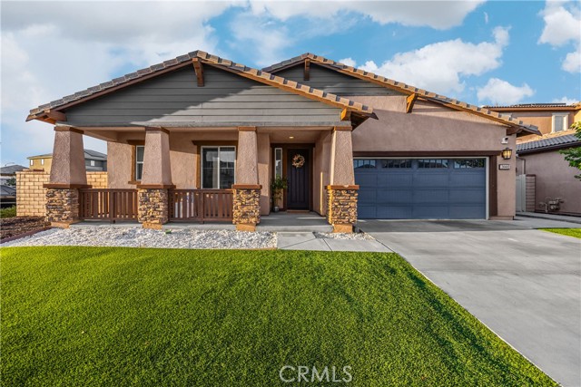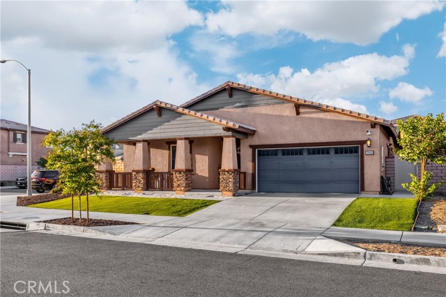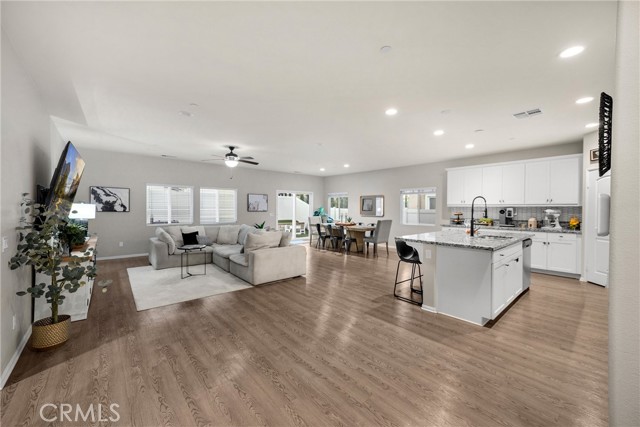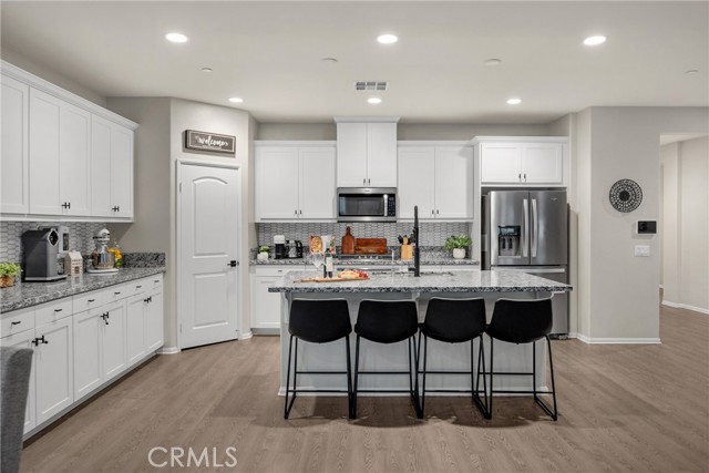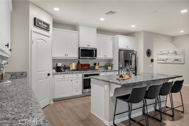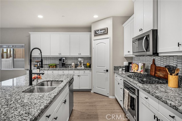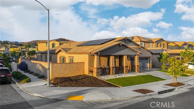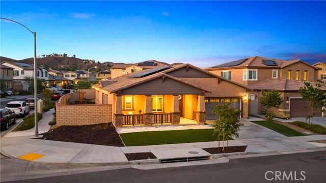 Welcome to 24440 Reserve Ct! Modern comfort meets effortless living! Located in the highly desirable Audie Murphy Ranch community, this beautifully upgraded single-story home offers 4 spacious bedrooms, 3 full bathrooms, and over 2,400 sq ft of open-concept living space. Built in 2020, this home has been thoughtfully designed for both everyday living and stylish entertaining. Step inside to discover luxury vinyl plank flooring, high ceilings, and an abundance of natural light. The chef’s kitchen features granite countertops, a large center island with bar seating, stainless steel appliances, a walk-in pantry, and plenty of cabinet storage. The private primary suite is tucked away from the secondary bedrooms and includes a large walk-in closet, dual sinks, a soaking tub, and a separate glass-enclosed shower. Secondary bedrooms are well-sized, with one offering en-suite access. Additional highlights include: whole house water softener system and spacious laundry room. Outside, enjoy low-maintenance landscaping, artificial turf, and a spacious backyard ready for your personal touches. All of this in a resort-style community offering pools, spas, walking trails, parks, sports courts, and top-rated schools nearby. With easy access to shopping, dining, and the 215/15 freeways, this home checks every box!