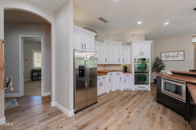 If you are looking for a beautiful home on a huge lot with a big shop, this property is for you! With 60 owned solar panels and 400 amp 3-phase electrical service, the possibilities are endless. This 3,368sf home w/4 bedrooms & 4 bathrooms on 2.42 acres has been impeccably maintained. The formal living room features large windows with a view of the lush backyard. There is also a formal dining room and a separate family room, brick fireplace, and French doors to the large covered patio. The gourmet kitchen has a massive island and a Jenn-Air appliance package including a 6-burner range and double ovens. The spacious primary suite includes 2 walk-in closets, dual vanities, a huge shower, and jetted tub. 4-car garage with epoxy floors and built-in storage. Gorgeous landscaping with numerous mature shade trees surrounds the property. The 60'x 40' shop has 3 roll-up doors plus 2 adjacent storage units. Includes an animal pen with dedicated water. Shared well serves 4 parcels.