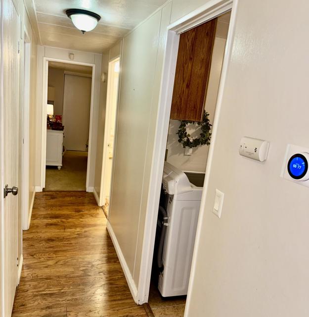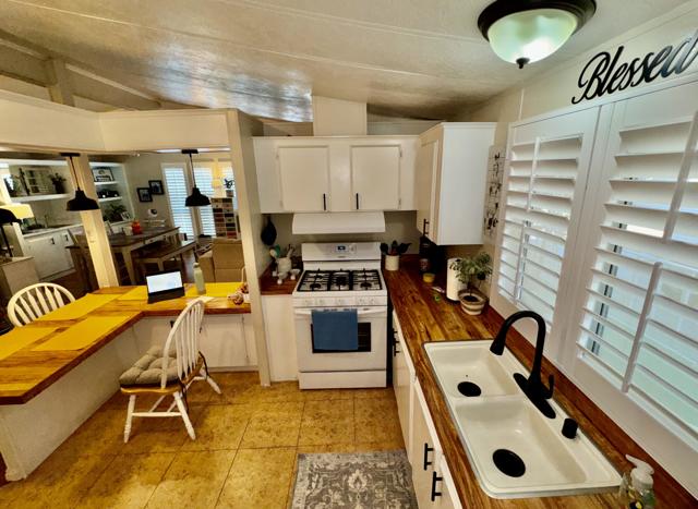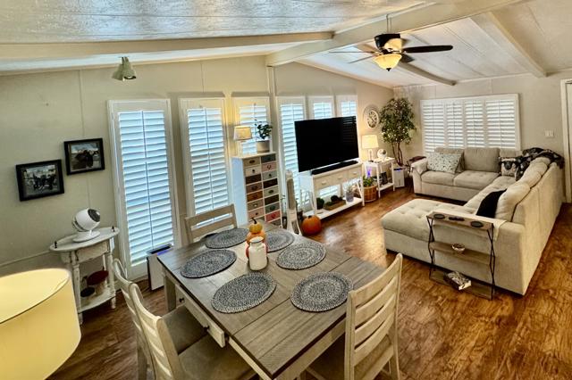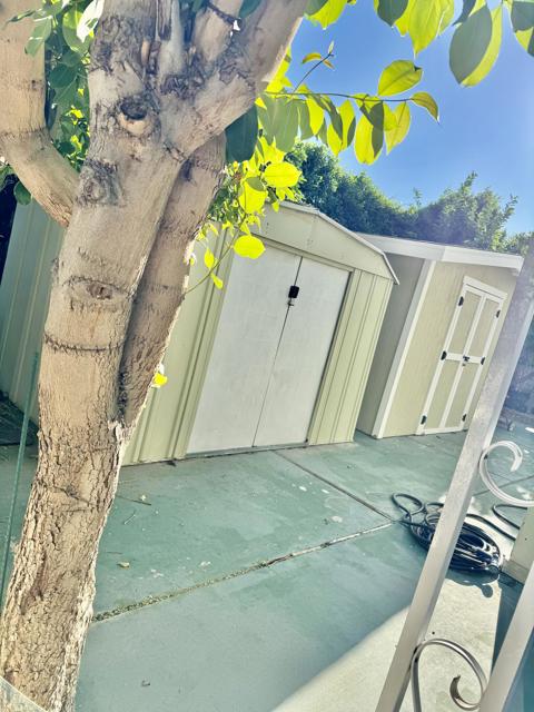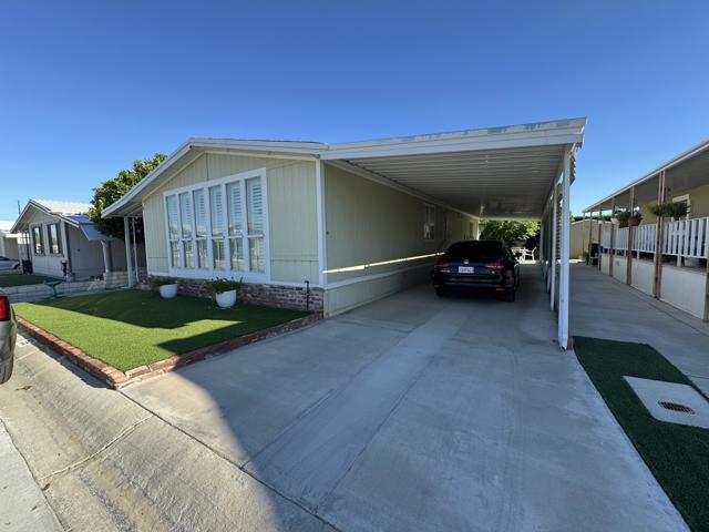 Rancho Casitas is a 55+ Gated Community, you own the land. This home sits on a permanent foundation (433A Certified) Bright and Open Living and Dining room with lots of storage. Built in wall unit with wet bar. Energy efficient shutters help with temperature control on all main living area windows. Kitchen has large pantry. Enjoy your morning coffee at the breakfast bar open to the cozy kitchen. Large laundry room with built in desk. Primary bedroom with plush carpeting. Primary bath has large soaking tub separate from the corner shower. Large hall bath with tub your grandkids. Comfy guest bedroom for when the kids visit. Outside is maintenance free! Concrete throughout with two sheds! Mature lemon and pomegranate trees. Plus a surprise fruit tree in front!! Come take a look!