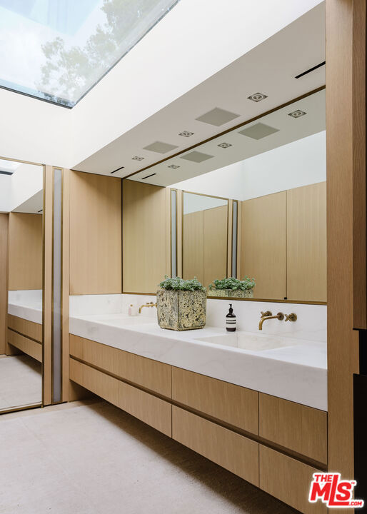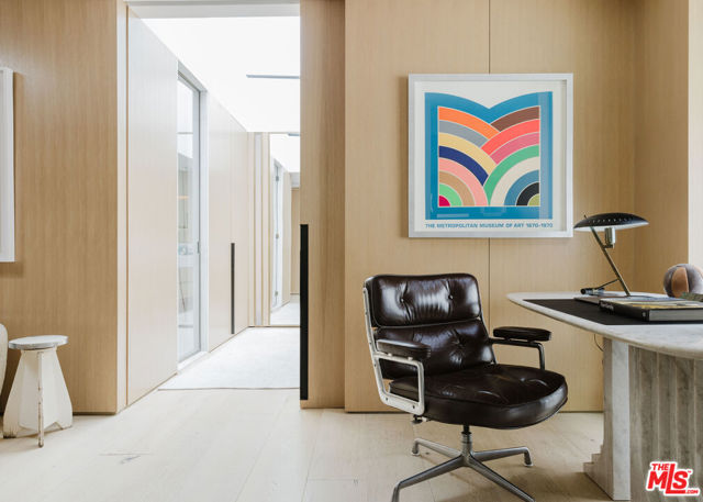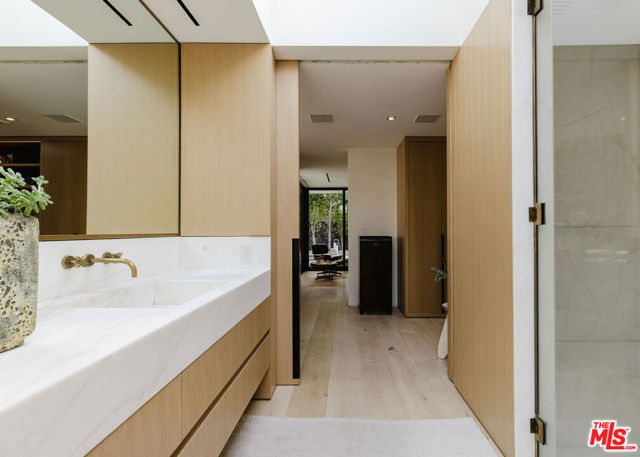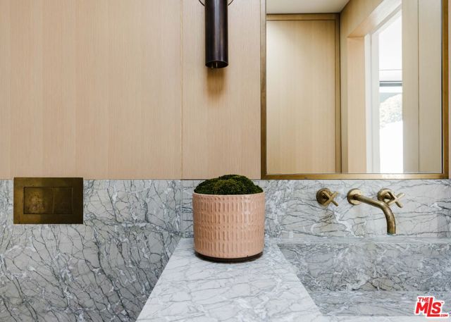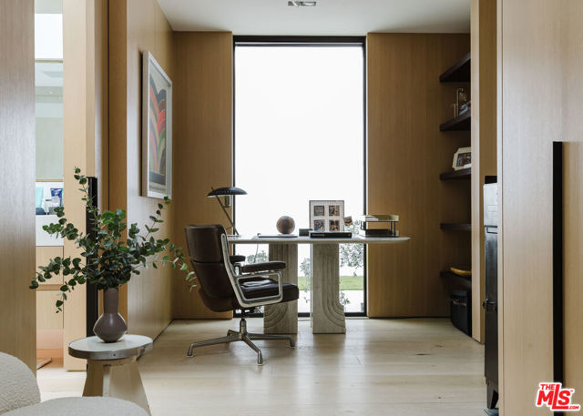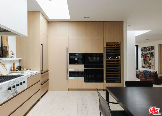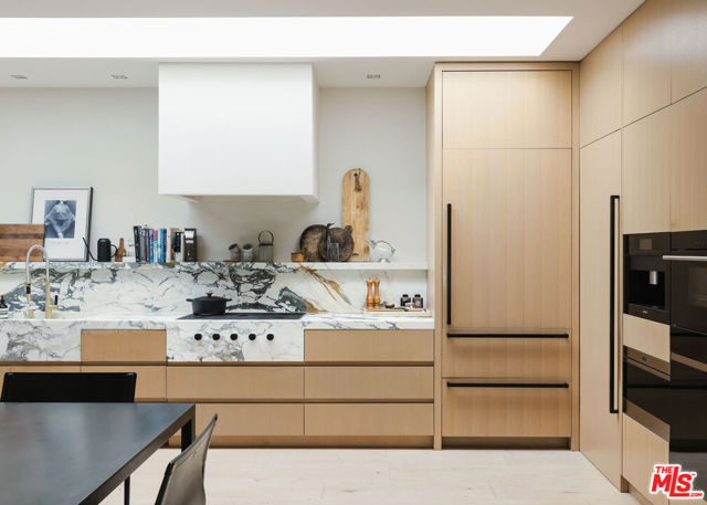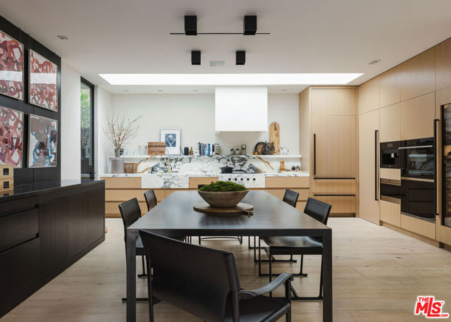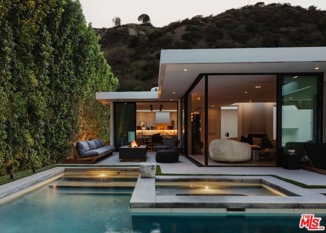 Tucked away just north of Sunset and the iconic Beverly Hills Hotel, 1952 North Beverly Drive is a sleek, single-story residence that balances refined international design with effortless California living. Designed by Yoram LePair (a Gehry Partners alum) and illuminated to perfection by noted lighting designer Mark Raissen (Sunset Tower Bar, San Vicente Bungalows), the home is defined by refined silhouettes, an abundance of natural light, and fluid indooroutdoor connection. Expanses of floor-to-ceiling glass, meticulously detailed rift-oak paneling, and wide French oak planks in generous proportions set a sophisticated tone. The kitchen is conceived for openness and connection, inviting conversation and versatile entertaining with a large, centralized dining area as a natural gathering space for shared meals. Appliances include premier selections from Sub-Zero, Wolf, and Miele, along with wine refrigeration for 300 bottles and a full-service wet bar detailed in blackened steel, ebony millwork, and honed Saint Laurent marble. A formal living space orients toward the yard and pool, capturing views of the softly rising hillside that extend toward the gated entrance of Franklin Canyon Park. The primary suite offers an expansive walk-in wardrobe with thoughtfully designed dressing areas, and a luxurious bath finished in stone and tailored millwork, with sleek pocket doors that blur thresholds with graceful simplicity. A secondary bedroompresently configured as a denserves as a retreat for entertainment and quiet conversation, with a discreetly integrated full bath concealed behind sculpted oak walls. Outdoors evoke the atmosphere of a boutique hotel, with a firepit lounge framed by teak sofas, a pool and spa detailed in muted Japanese tile, and a large fireplace thoughtfully incorporated into a bespoke garden wall. Multiple SONANCE speaker systems complete the setting, creating a fully immersive environment for an activated outdoor lifestyle. Intelligent living is defined by Control4, Lutron, and AI-driven automation. The detached guest casita (fully permitted with its own address at 1954 North Beverly) offers the ultimate in private accommodation, with a stone-clad bathroom, custom wardrobe, concealed refrigeration, and dedicated storage. A separate laundry/tech room includes additional wine refrigeration and generous organizational space. The restrained exterior faade blends discretion and design, softened by native landscape architecture from Elysian Landscapes. Covered parking is secured behind an 8-foot louvered steel gate, maintaining the residence's understated presence.