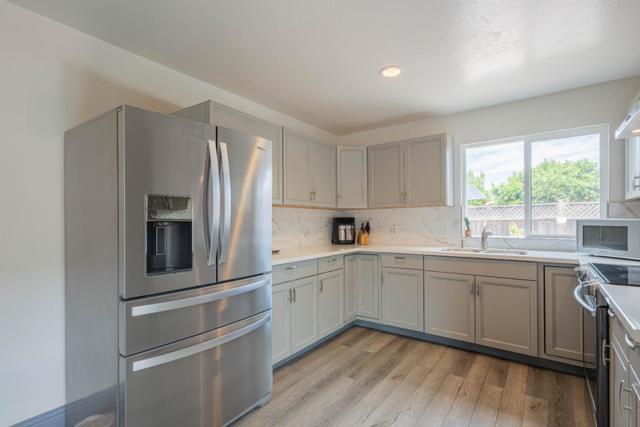 MUST SEE! MOVE-IN READY gem located in the heart of Gilroy. This meticulously remodeled residence, boasting upgrades throughout, offers convenience with easy access to Highway 101, shopping, and dining. Renovated in 2020, updates include new floors, a modern kitchen, upgraded bathrooms, and new windows complemented by fresh interior and exterior paint. Recent enhancements by the current owner feature a new roof (2023), complete AC unit (2024), and a furnace unit (2020), ensuring year-round comfort. The sale includes owned solar panels, a spacious driveway accommodating up to 3 cars PLUS 2 car garage. Essential appliances included on sale - washer, dryer, and refrigerator. Don't miss your chance to own this super well kept home inside and out offering both comfort and convenience.