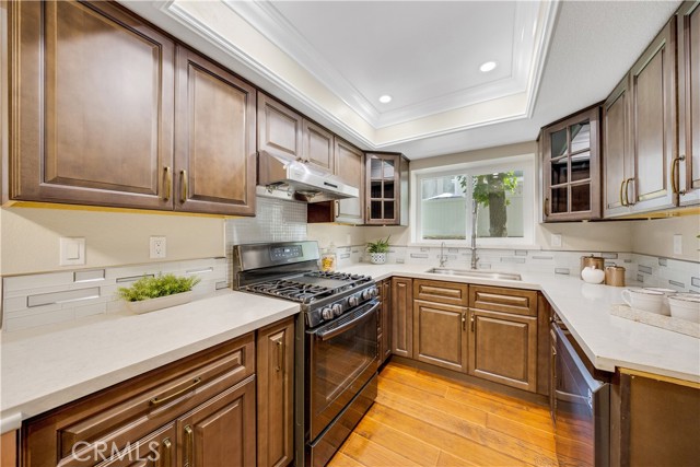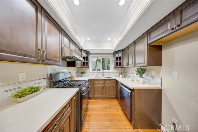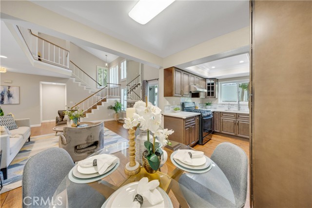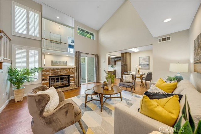 Location, Location, Location! Welcome to this beautiful condo located in a desirable gated community within the top-rated school district of West Covina. This 2-bedroom, 2.5-bath home is filled with natural light, accentuating the soaring high ceilings and creating a bright, open feel the moment you walk in. The spacious living room features a cozy fireplace, while laminate wood flooring flows seamlessly throughout the home, adding a warm and inviting touch. The dining area sits just off the living room and connects to the upgraded kitchen, which showcases quartz countertops and modern finishes. Upstairs, you’ll find two spacious master bedrooms, each with its own updated ensuite bathroom, featuring quartz countertops and beautifully tiled showers. Enjoy the privacy and security of gated living, along with community amenities including a sparkling pool—perfect for relaxing or entertaining.